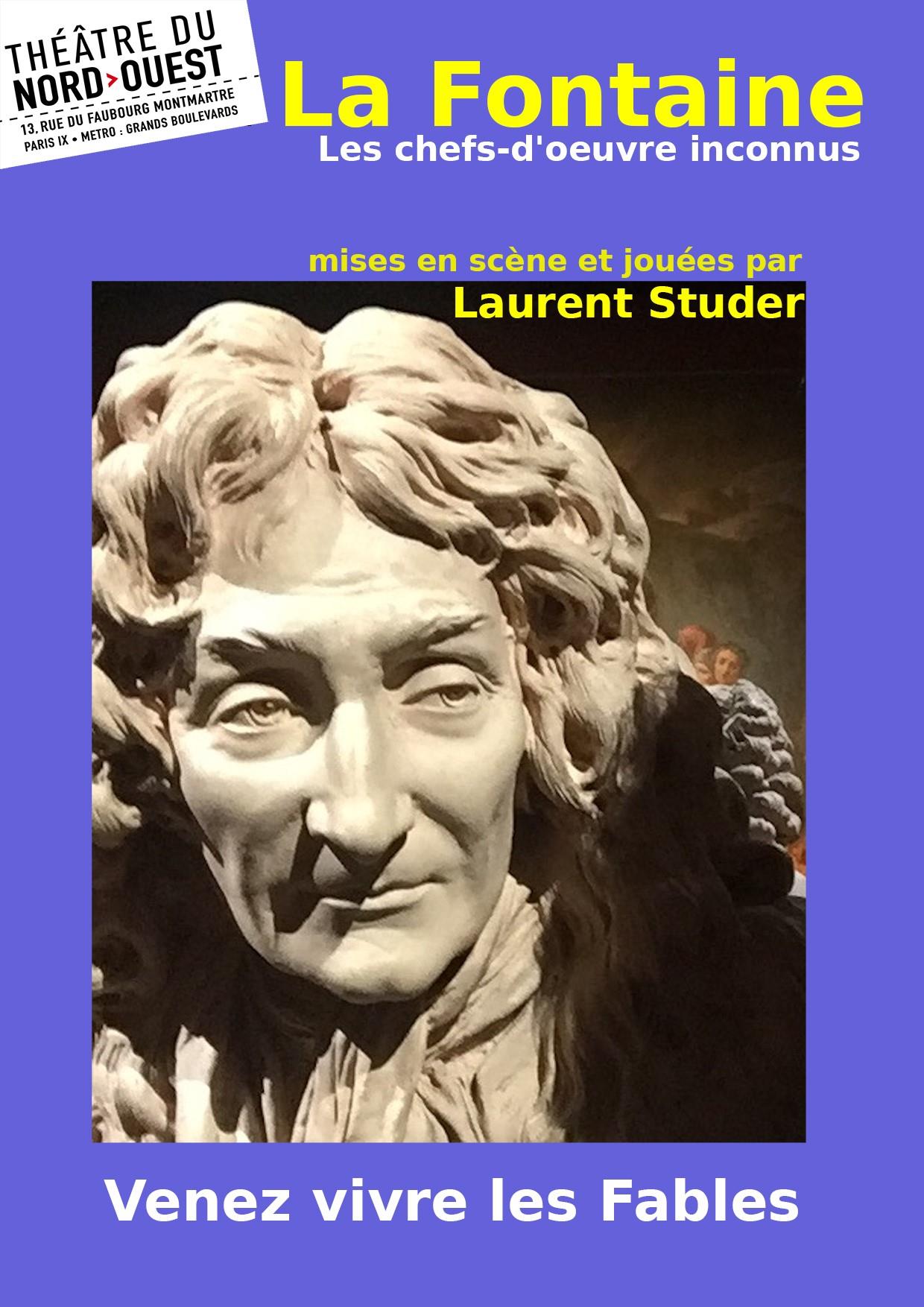 Les plus belles Fables de Jean de La Fontaine sont inconnues et grinçantes: Les Loups et les Brebis, Les Compagnons d’Ulysse…d’autres sont légères telles que: La Chauve-souris et les deux Belettes, Le Renard le Loup et le Cheval...il y aura toutefois dans ce spectacle quelques incontournables comme : La Laitière et le Pot au lait, Les deux Pigeons... Laurent Studer, avec toute sa passion pour La Fontaine, vous fera découvrir ou redécouvrir un écrivain chéri des Français !