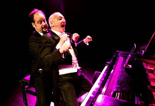 Pour ce nouveau spectacle, Delicatissimo, le duo très pince sans rire imagine que les brouillons de partitions de Beethoven, Ravel ou Bach réapparaissent dans les compositions des Rolling Stones, David Bowie ou Jean-Jacques Goldman.