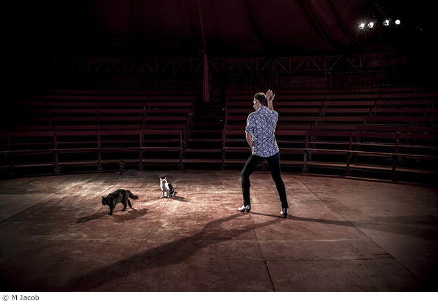 On ne présente plus l’artiste sévillan, immense rénovateur du flamenco ; ses grandes pièces, universelles et contemporaines au coeur desquelles le regard brûle pour le danseur, son compás absolu, ses zapateados qui laissent l’espace essoré. Ses solos purs, eux, restent rares. Ponctuels. Osés volontiers sans musique, poussés au plus près du risque de l’instant. Au cirque Romanès, le danseur baptise son solo La Gatomaquia o Israel Galván bailando para cuatro gatos.