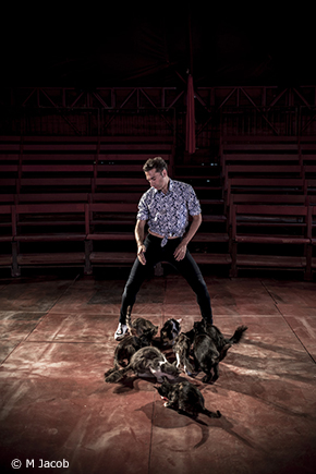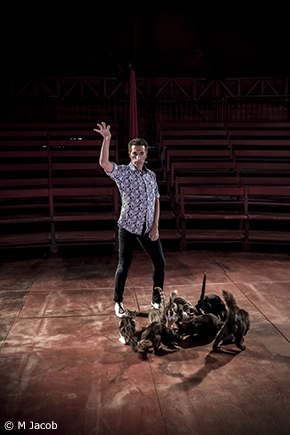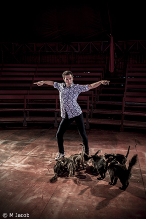 El gato : le chat. La Gatomaquia (La Bataille des chats) : un chef-d’oeuvre burlesque de Lope de Vega. La curiosité est à vif. La langue populaire ne dit-elle pas que « danser pour quatre chats », c’est être seul avec soi-même ? Or, au cirque Romanès, on n’a jamais vu d’autre animal en piste que les chats de la famille. Où Galván rejoue l’énigme d’une magistrale solitude…