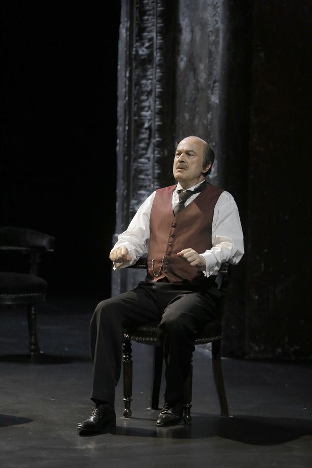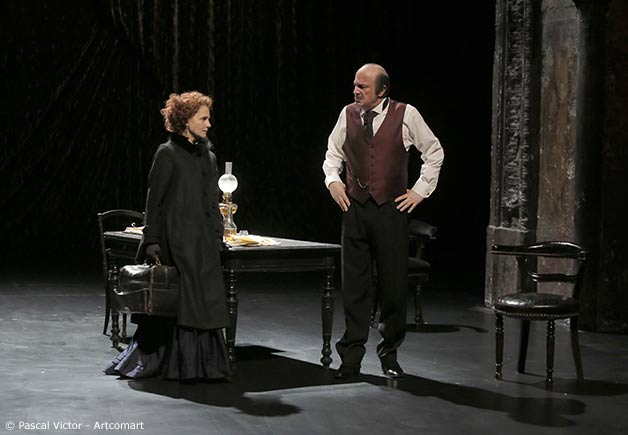 Face à lui, une femme plus jeune, qui est née poète, sensible. Mariée à un banquier par ses parents qui ne la comprennent pas non plus, elle aurait aimé employer ses forces à aimer et être aimée de son mari. Mais elle ne reçoit qu’abandon et condescendance. Cette Elisabeth est une petite soeur de la Molly Bloom de Joyce (interprétée par Anouk Grinberg ici même aux Bouffes du Nord). L’une et l’autre de ces femmes ont placé trop d’espoir dans l’amour et avaient une idée beaucoup trop romantique du mariage : « Je ne vous souhaite pas de vous douter jamais de ce que vous avez perdu ! », lance froidement Elisabeth à Félix.