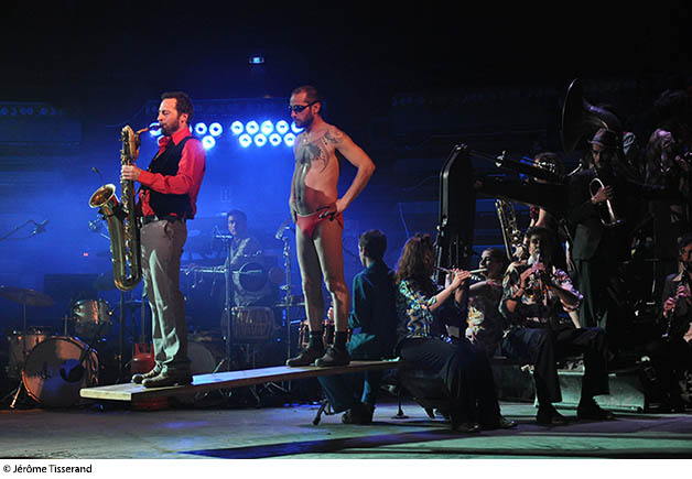 À lui seul, Surnat, c’est déjà un OVNI, un orchestre XXL, qui fait voler en éclats les codes du concert. Mais lorsque son univers débridé se frotte à celui du cirque, on est projeté en un clin d’oeil dans le spectacle hors normes.