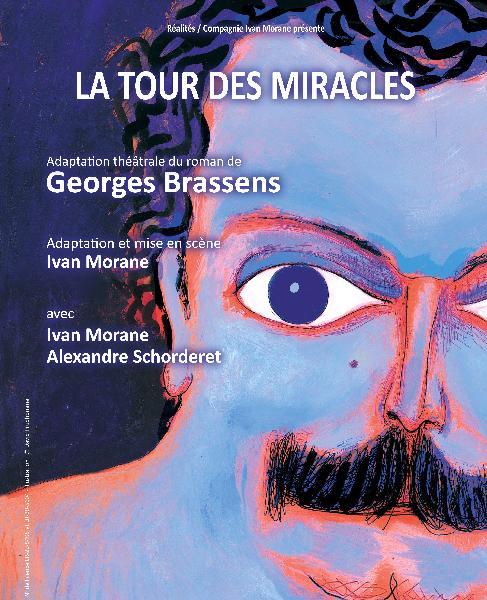 Paru en 1954, le second roman de Georges Brassens « La Tour des miracles » a été écrit en 1950 lorsqu'il habitait chez Jeanne. Porté pour la première fois à la scène, et interprété par deux comédiens jouant des dizaines de personnages, ce récit à la truculence rabelaisienne est extraordinairement théâtral ! Truffé de dialogues et de situations surréalistes et comiques, de figures incroyables, ce texte ne peut que réjouir tous ceux qui rient, pleurent, se révoltent ou s’enthousiasment à l’écoute des chansons de Brassens !