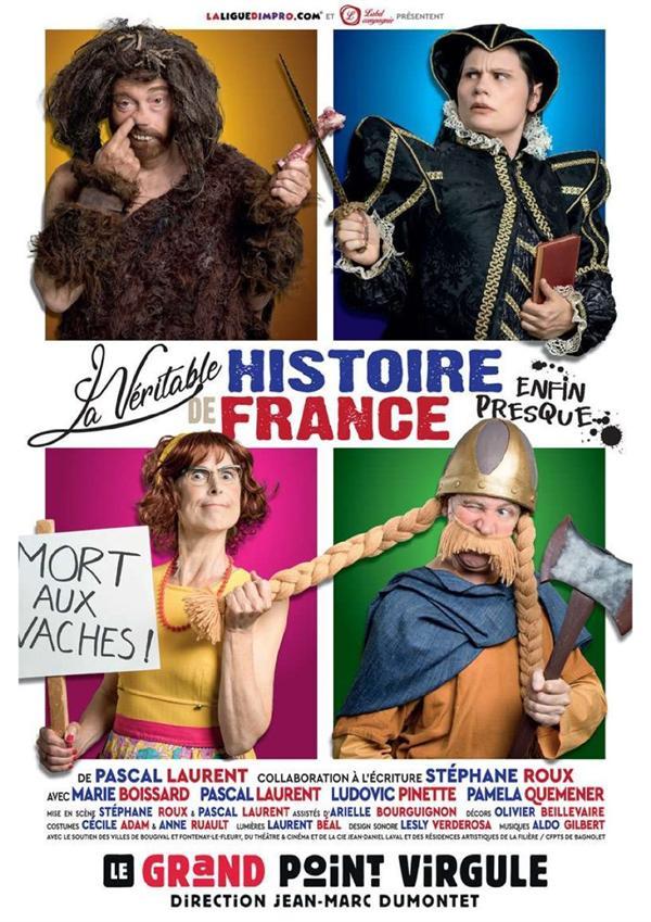 La Véritable Histoire de France… enfin presque ! revisite, sous forme de conférence historique, une quinzaine de grands événements marquants de l’Histoire de France, de la Préhistoire à mai 68, dans un esprit résolument moderne, décalé et bourré d’humour !