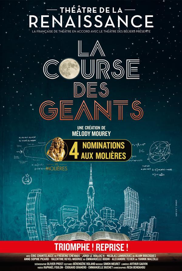 « Après les Crapauds fous qu’on avait déjà beaucoup aimés, Mélody Mourey met en scène la conquête spatiale américaine. Mélangeant fiction et faits historiques, la prodigieuse autrice et metteuse en scène réalise un spectacle totalement réjouissant. Une mise en scène – presque une chorégraphie – épatante d’ingéniosité, des décors qui nous transportent dans l’Amérique des sixties, six formidables comédiens qui interprètent 30 personnages nous tenant en haleine entre le rire et l’émotion, c’est épique, burlesque et historique. Fantastique Course des géants ! » TTSO