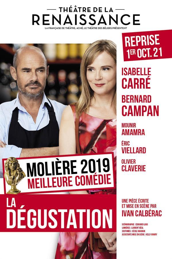 « En prenant des faux airs de comédie romantique de cinéma, cette Dégustation permet surtout aux deux protagonistes de briller. Isabelle Carré, comme souvent, a ce «grain» de folie irrésistible et grisant. Elle est toujours aussi drôle, délicate et spirituelle. (...) Campan, qui s'affirme toujours plus dans le registre dramatique, retrouve les planches avec plaisir flagrant et une profondeur rare dans ce type de rôle. » Jean Talabot, Le Figaro, 12 février 2019