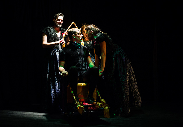Dans un espace rempli de cadeaux, le décor, les accessoires et les personnages au service du Prince sont emballés et enrubannés.