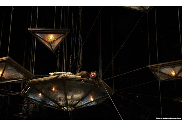 Nouveau monde de James Thierrée, avec envolées, tableaux magiques, mystères, métamorphoses. « Pourquoi on accroche des fils aux cintres à jardin plutôt qu’à cour ? demande-t-il, pourquoi mon corps s’articule en général à l’envers du naturel, pourquoi ce qui est catégoriquement prévu rarement se réalise ? Hein ? Et puis surtout pourquoi on imagine une histoire et on l’entreprend ? Je n’en sais rien. »