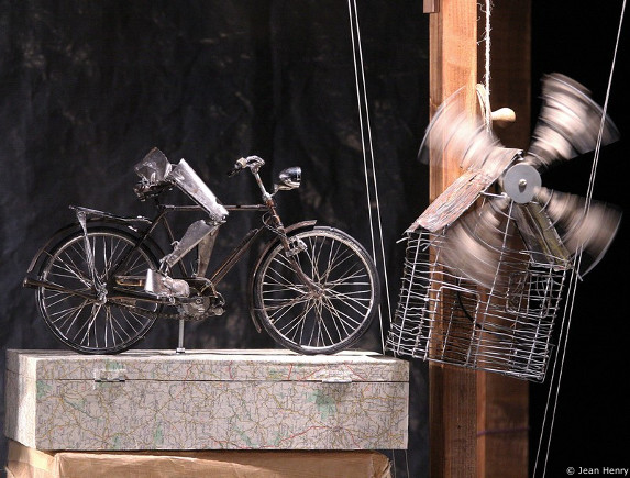 Ce spectacle, lauréat des Molières pour le jeune public, raconte à de très jeunes enfants, une histoire terrible inspirée d’un fait divers réel. L’histoire est volontairement racontée avec naïveté et candeur, adaptée au rythme des petits tout en permettant plusieurs niveaux de lecture. Dans la lignée de Chaplin, Serge Boulier fustige la bêtise du monde avec les armes de sa poésie, décapante, faite de « bidouilles », de rouages et de manivelles, de matériaux bruts qui ne valent en apparence pas grand chose. Sur la scène un incroyable bric-à-brac devient le support de toutes les rêveries du personnage. Si le voyageur est immobile, l’imagination erre de lieux en rencontres, de pays en cultures, de liberté en interdictions incontournables… Une expérience de vie.