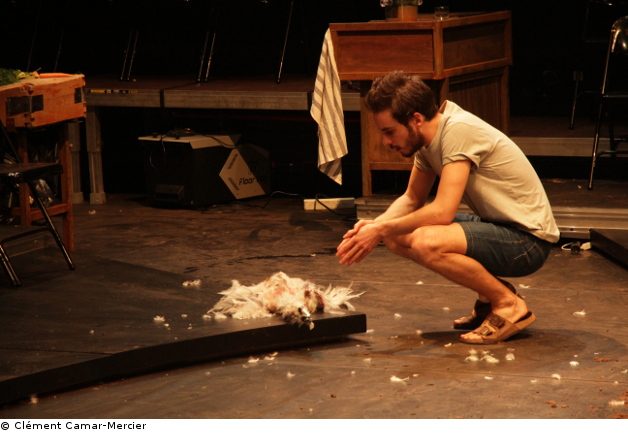 Spectateurs et acteurs sont les témoins de cette tentative avortée. De l’interruption violente de cette représentation d’inspiration symboliste naît l’opportunité unique d’explorer toute la profondeur de cette vertigineuse mise en abyme. Dans cette version de La mouette, les prénoms russes trouvent leurs équivalents français. Affranchis de toute forme d’exotisme, de toute facilité de divertissement, nous entendons résonner au plus profond de nous-mêmes le propos de Tchekhov : « On exige du héros, de l’héroïsme, qu’ils produisent des effets scéniques. Pourtant, dans la vie, ce n’est pas à tout bout de champ qu’on se tire une balle, qu’on se pend, qu’on déclare sa flamme et ce n’est pas à jet continu qu’on énonce des pensées profondes ».
