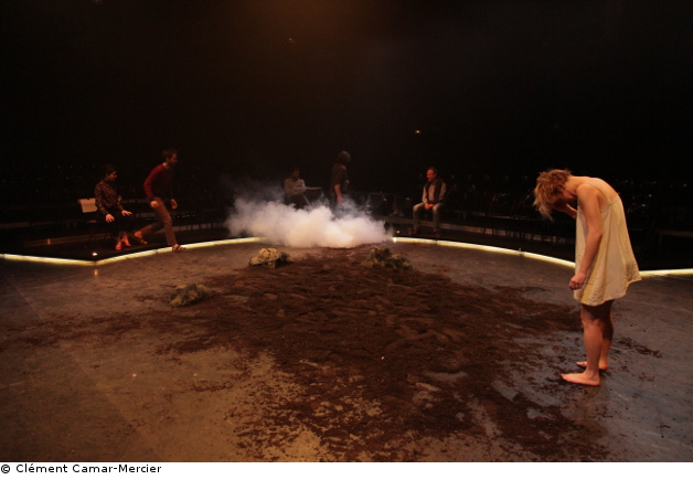 Le plateau sera de plain-pied et la salle aura des allures d’arènes, un cercle déconstruit, qui permettra d’alterner entre une grande proximité et une distanciation, un sentiment d’étouffement comme, a contrario, une grande respiration. Il n’y aura aucun décor fixe, pas de costumes d’époque mais beaucoup d’accessoires qui s’accumuleront petit à petit et qui resteront sur l’aire de jeu. Le dispositif évoluera. Un seul espace matriciel contiendra tous les espaces, nous ne serons pas dans un quadri-frontal habituel, nous serons dans un espace anarchique qui offrira la possibilité aux acteurs d’être dans des corps du quotidien, détendus et libres car nous voulons éviter le corps « théâtral ».