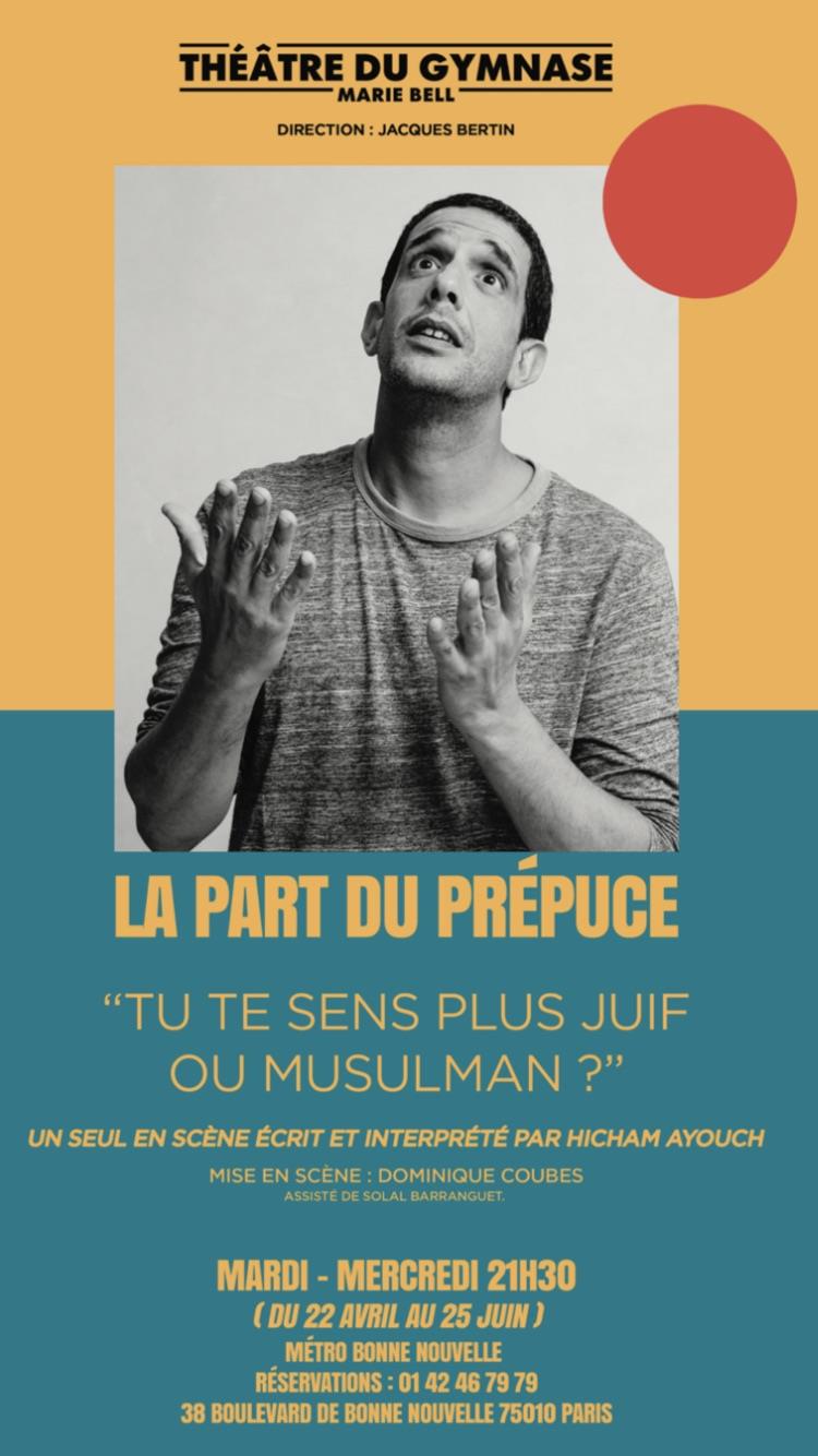 Quelle est la part de fiction dans ce spectacle ? Je l’ignore ; en tout cas, Hicham Ayouch a mis beaucoup de sa vie dans ce seul en scène autofictionnel. En d’autres termes : être à la fois juif et musulman, comme il l’est, est source de névroses mais aussi d’une grande richesse dans un message humaniste. Un vrai message humaniste, fort, pas gnangnan.
