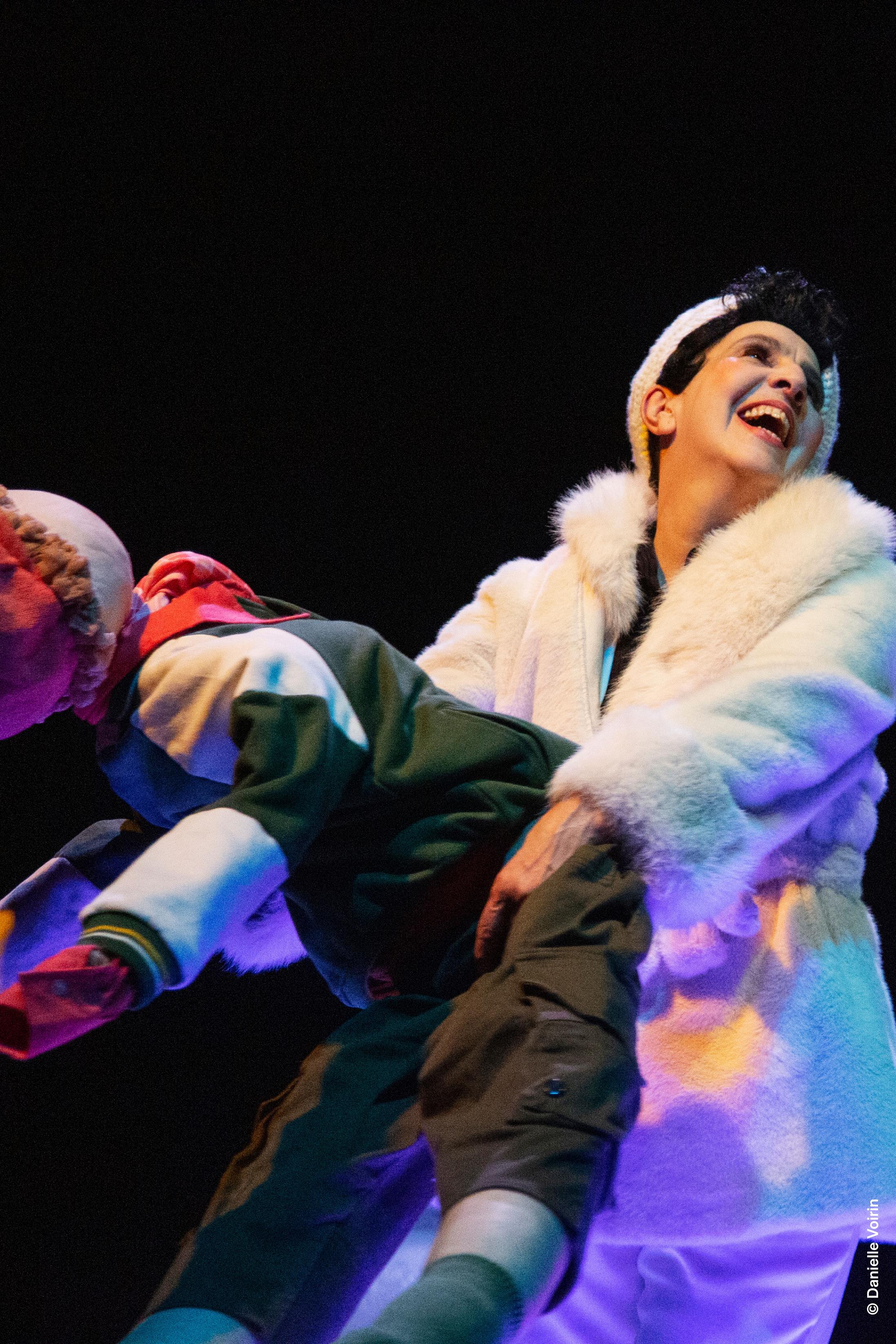 Cette fable prend vie à travers deux grandes poupées de chiffon, la soldate et la diable, manipulées par une seule performeuse. Le plateau, bordé d’une piste disco, devient l’espace d’un théâtre onirique, où le récit se déploie en voix off, soutenu par une bande sonore électro. Dans cet univers fantasque mêlant les arts, Gaëlle Bourges livre une lecture critique des représentations de genre dans l’art. Elle explore le rapport des femmes à la guerre, à l’argent et à l’amour, tout en formulant la question vertigineuse : jusqu’où sommes-nous prêtes à aller pour être heureuses ?