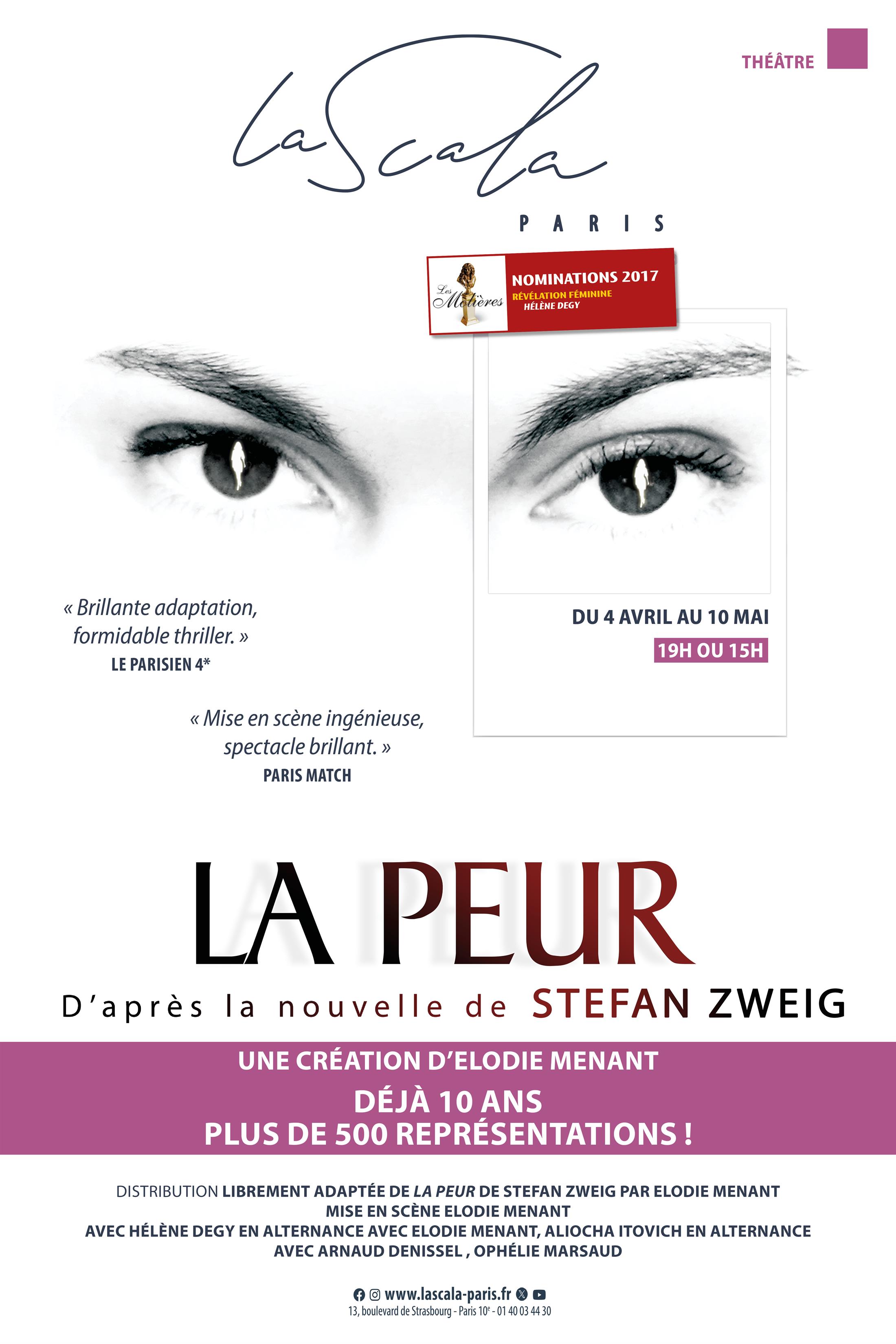 La nouvelle de Stefan Zweig « La peur » m’offre le fil conducteur de cette pièce, une trame forte et simple, proche de beaucoup d’entre nous, sur un thème universel, le couple et la difficulté à ne pas devenir colocataire du quotidien. Le traitement de cette histoire est plus « complexe ».