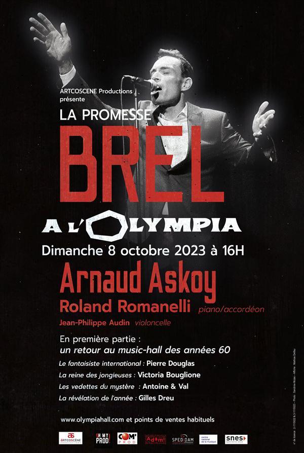 Si vous voulez passer une bonne soirée, pas d'hésitation, allez à l'Alhambra écouter un vrai chanteur ARNAUD ASKOY, qui interprète BREL accompagné par deux supers musiciens, Roland Romanelli et Jean Philippe Audin. Vous ne le regretterez pas.