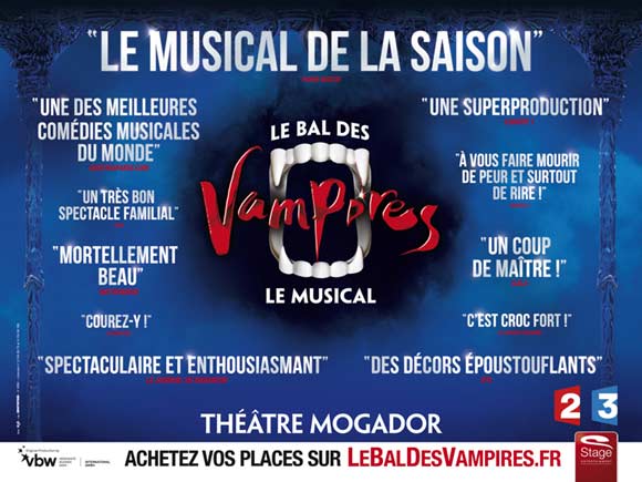 Depuis sa création en Autriche en 1997, j’ai toujours rêvé de voir mes vampires chanter et danser (et mordre !) à Paris. Et voilà, en octobre 2014, vous pourrez les découvrir ici, au théâtre Mogador.