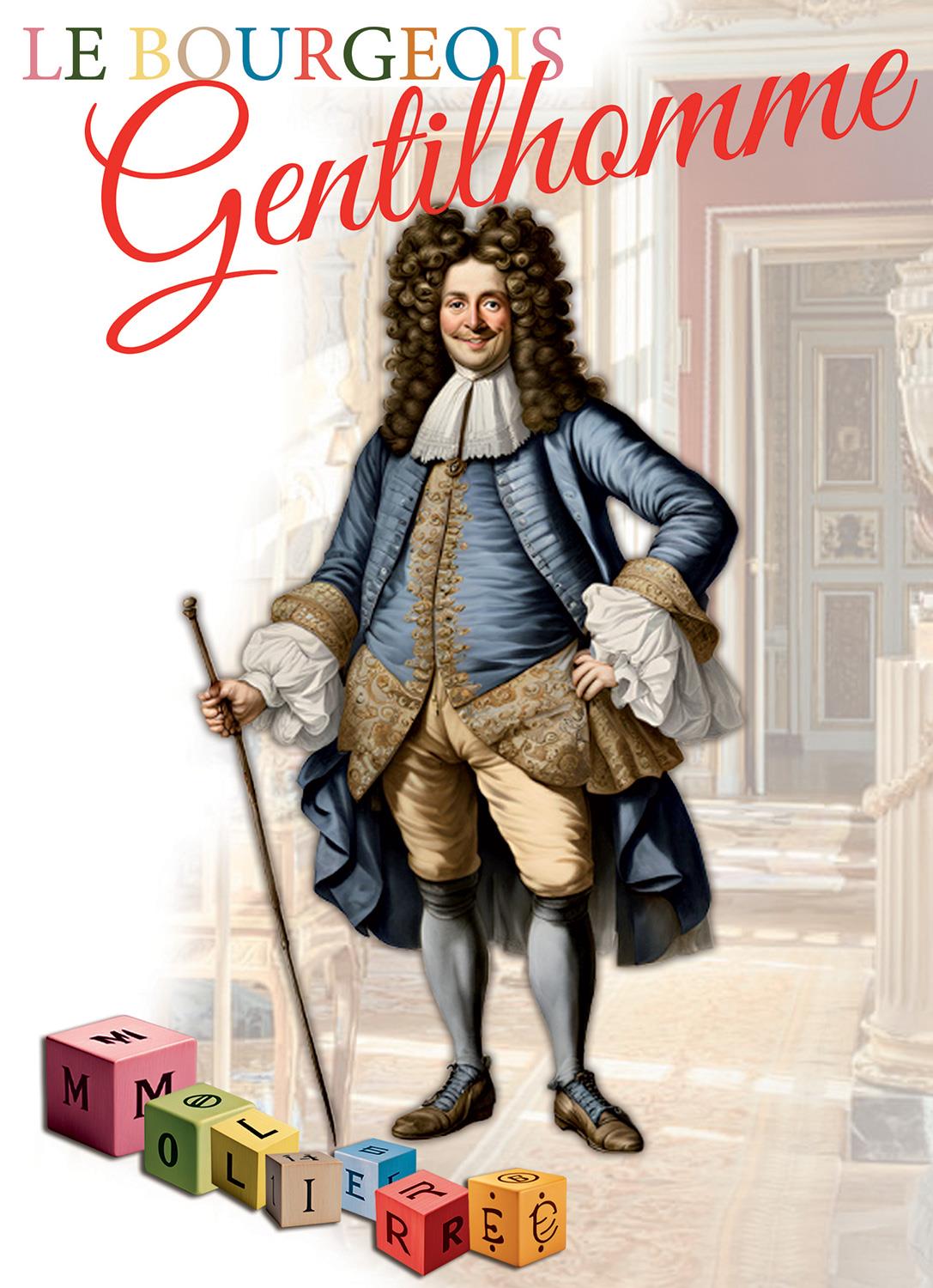 Riche bourgeois, Monsieur Jourdain ne rêve que d’une chose, devenir gentilhomme. Il utilise, à cette fin, tous les moyens que sa richesse lui donne et s’entoure, à grands frais, de « professionnels » en tout genre, maître d’arme, professeur de chant, de danse, philosophe…. Son désir est tellement fort qu’il refuse à sa fille, Lucile, la main de son jeune prétendant, Cléonte, n’étant pas lui-même gentilhomme. Ce dernier devra faire preuve de beaucoup d’imagination pour arriver à ses fins.