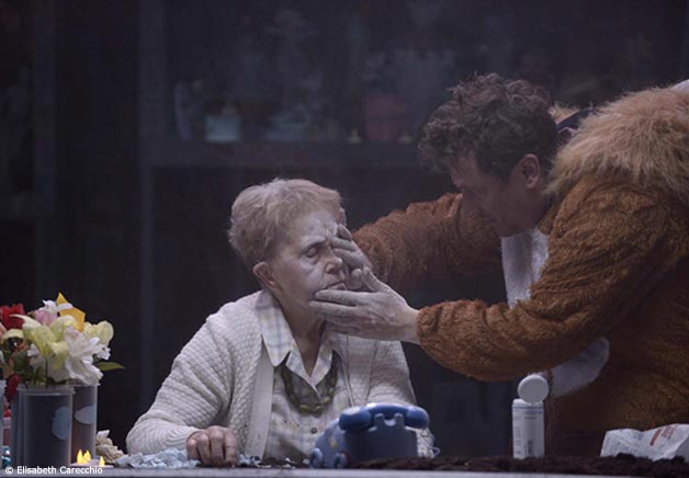 Le moment du deuil crée un espace particulier. La mort d’un père dans une famille bouleverse l’ensemble des liens qui la structure. Ce n’est pas uniquement la relation au père qui disparaît, mais l’ensemble des liens et des ramifications entre les membres de la famille. C’est un moment où la mort demande à chacun de réinventer son rapport à l’autre. C’est d’ailleurs à l’intérieur de ce bouleversement que la mort est la plus palpable, car on sait bien qu’envisager la mort est impossible. Nous avons besoin d’une représentation mentale de ce qu’est la fin, et la mort, c’est la fin, le noir, le rien. Donc paradoxalement, nous n’apercevons la fin d’une chose que parce qu’une autre est justement en train de commencer. Une nouvelle façon de se sentir avec sa mère, de voir son frère prendre une place, sa soeur s’occuper des papiers alors qu’elle n’a jamais envoyé ses propres feuilles de remboursement à la sécurité sociale... C’est cet endroit-là du deuil qui m’intéresse. L’endroit où quelque chose de fragile est déjà en train de renaître à partir de la douleur, de la perte, de la tristesse. Le spectacle interroge notre capacité à accepter la transformation de l’autre. Julie et Vincent pour la dernière fois jouent avec ce qu’ils connaissaient d’eux, car déjà chacun devient l’étranger de l’autre. J’imagine Le Chagrin dans un tout autre espace-temps que celui d’Elle brûle où on voyait évoluer une famille sur dix ans. Ici, pour Le Chagrin, c’est comme si la représentation servait de sas à ces personnages avant le grand bouleversement, comme s’ils voulaient retenir quelque chose avant de « vendre définitivement la maison ». On dit souvent que les gens, avant de se séparer, avant de faire leur valise pour commencer une nouvelle vie, font l’amour une dernière fois. Le Chagrin aura à voir avec cet acte d’amour. Comme une façon de rejouer ce que l’on sait être déjà parti : faire revivre non pas les morts, mais ce qui est déjà mort. Cela a à voir avec la réincarnation, avec l’incarnation... avec le théâtre ?