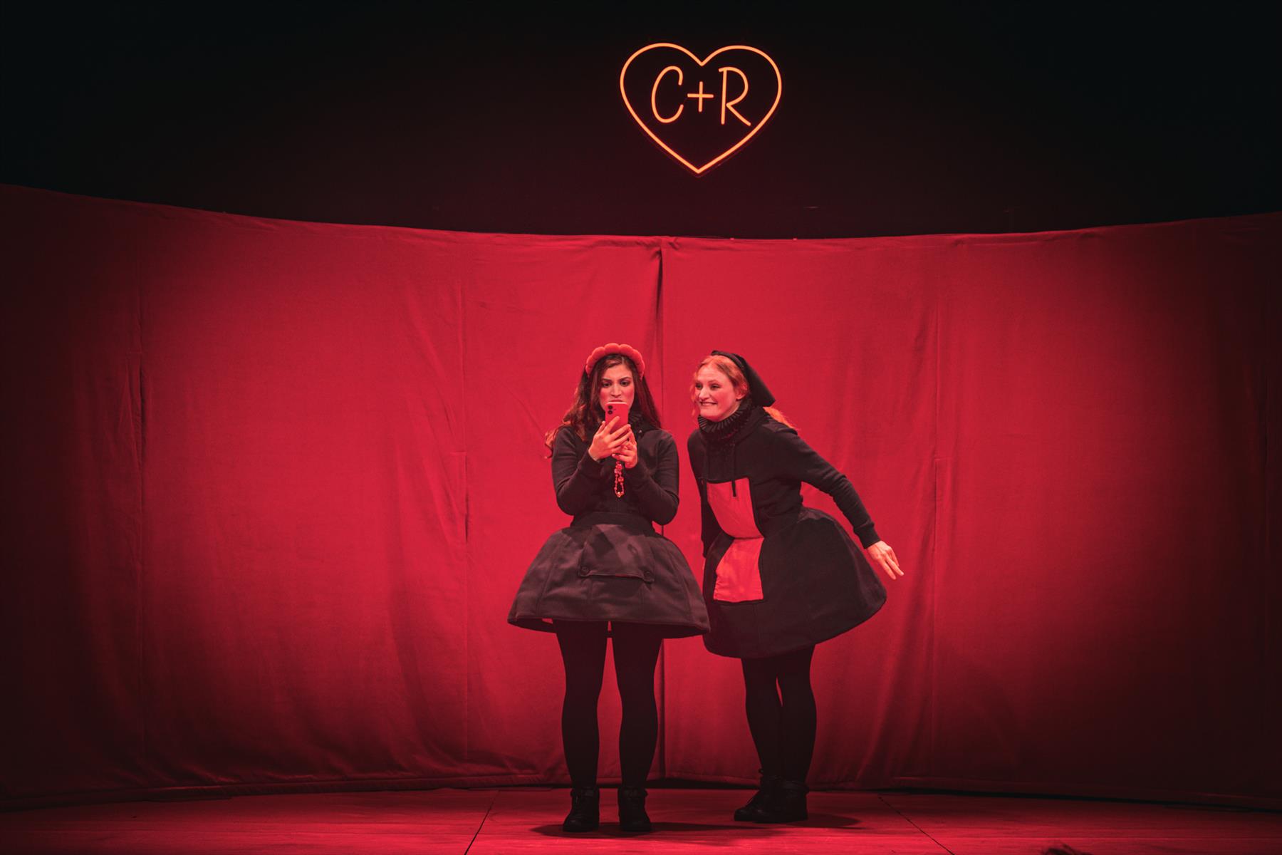 Caroline en signe la mise en scène avec 4 jeunes comédiens : Marie Bucher, Marion De Schrooder, Albin Duvert, Florian Schwob en ajoutant au texte de la danse, de la musique, de l’humour et de la pédagogie pour donner une envie de théâtre à ceux qui ne s’y sentent pas conviés.