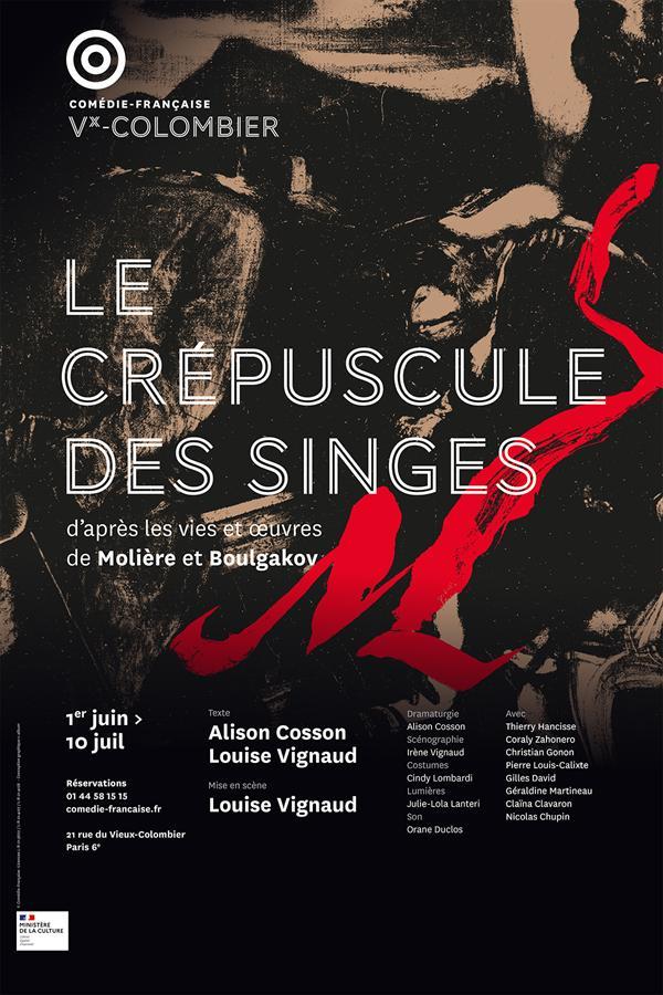 « Le Crépuscule des singes, quel titre étrange, n’est-ce pas ? [...] Trois siècles séparent Boulgakov de Molière et pourtant l’histoire se répète diaboliquement. Ce sont les destins de ces deux écrivains qui s’entrelacent dans la pièce d’Alison Cosson et Louise Vignaud. Cette dernière en signe aussi la remarquable mise en scène. » Anthony Palou, Le Figaro