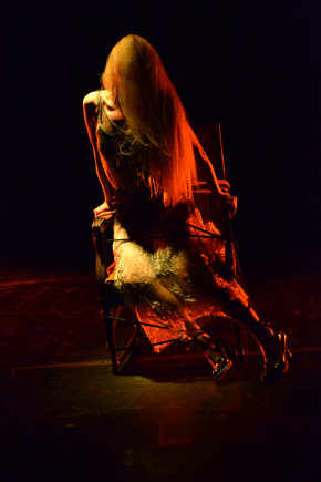 Le Cri d’Yvonne est une création où le personnage principal occupe la place de témoin, de miroir, mais aussi de victime face à la décadence qui l’environne. La mise en scène l’enferme dans une société artificielle qui se désagrège.