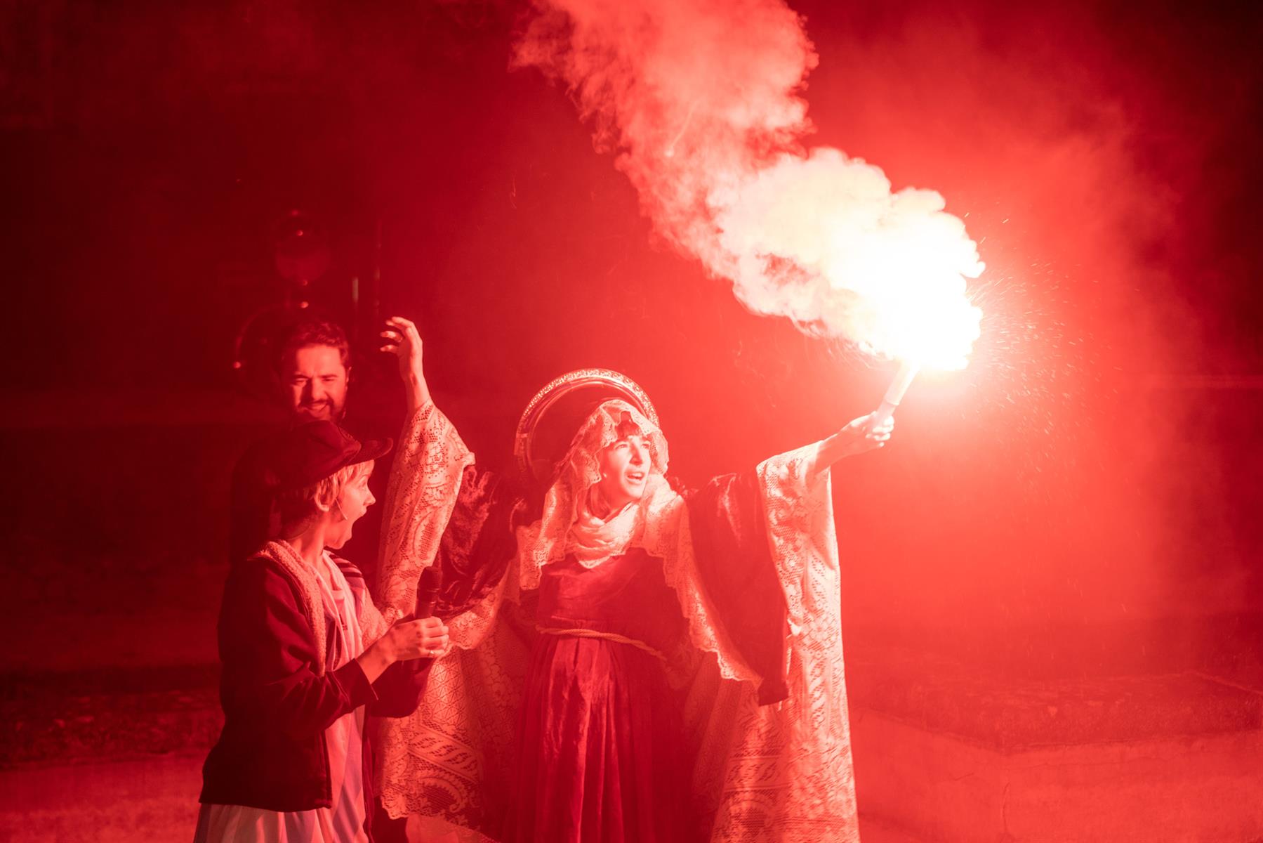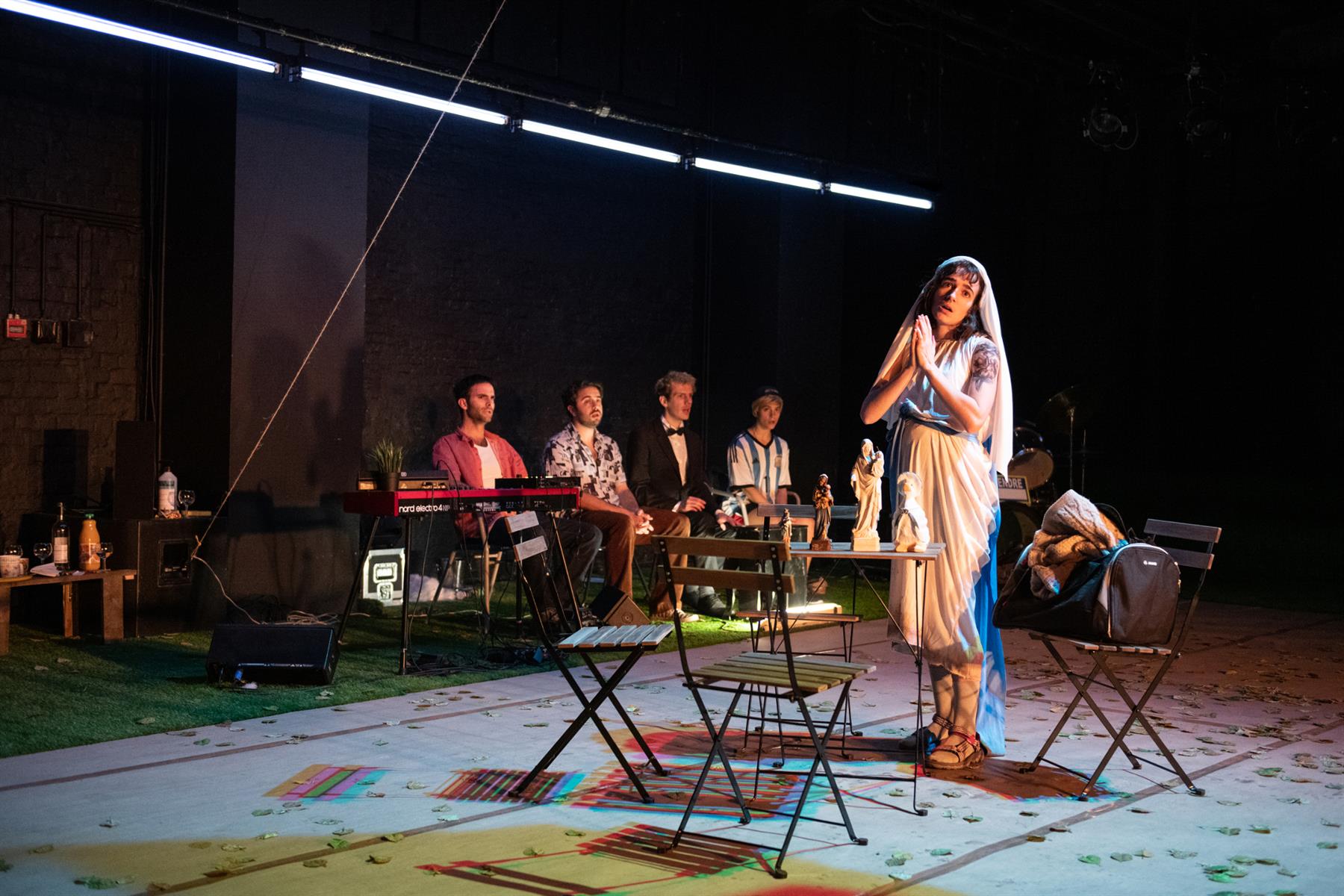 Réunis dans le jardin de leur enfance, les frangins Fritz et Antoine, flanqués de leur ami Nicolas, célèbrent le retour de leur sœur, Marie, qui est enceinte et se prend pour la Vierge. Menacé par un promoteur, mais farouchement défendu par la fratrie, ce jardin a certes des allures de terrain vague, mais c’est l’endroit le plus précieux du monde. Le temps d’une dernière fête, et puisqu’il faut résister au désenchantement, les garçons finissent par chercher la grâce aux côtés de Marie. Ce faisant, iels fabriquent une fable bringuebalante, un bricolage foutraque d’évangile, de théâtre russe, de chansons paillardes et de mélodies sacrées, toujours ponctuées par la pétarade d’une vieille mobylette.