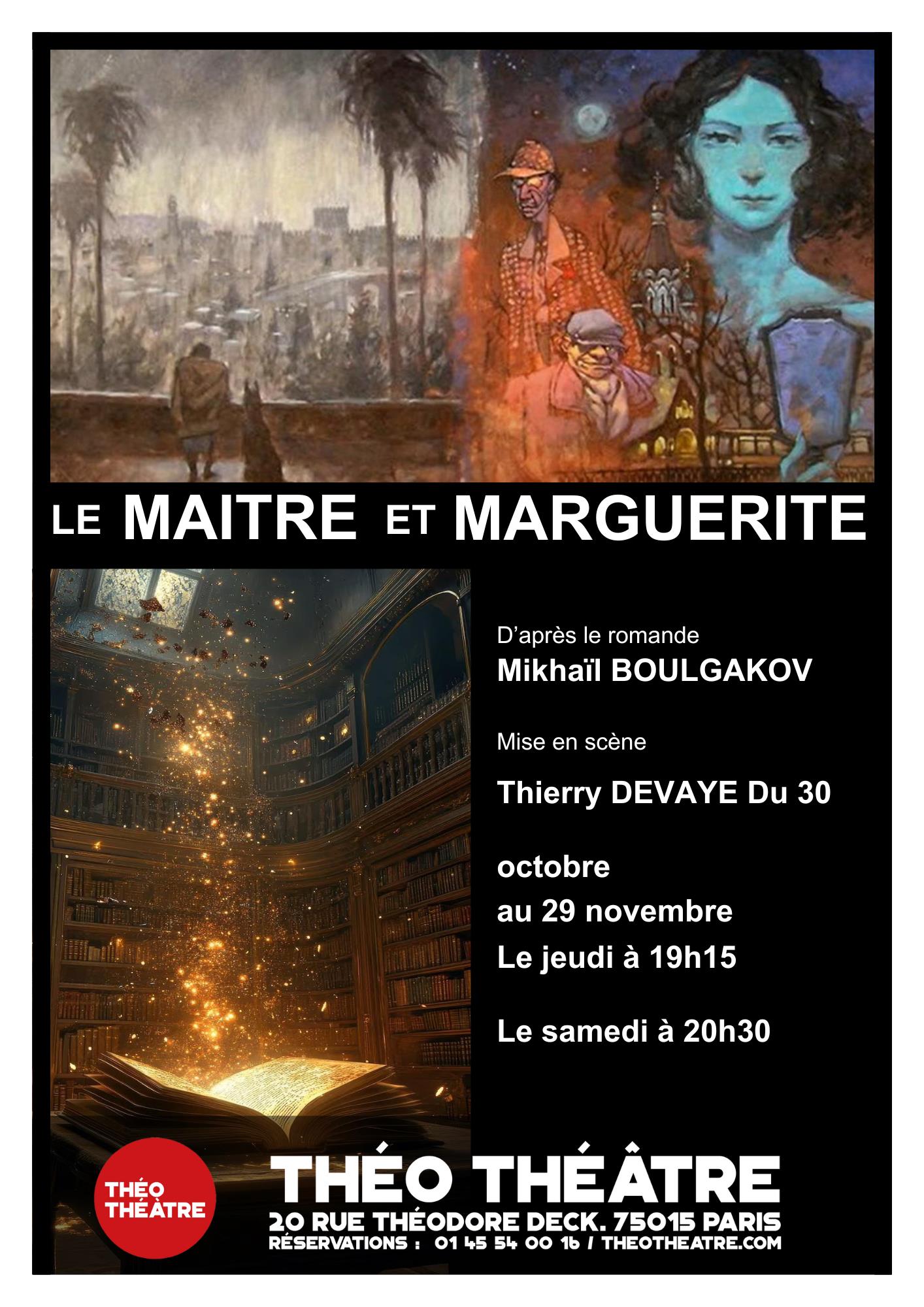 À Moscou, dans les années 30, le diable surgit sous les traits d’un mystérieux étranger et fait vaciller avec ses acolytes la ville entre folie, magie et révélations. Marguerite est prête à livrer son âme au Diable pour retrouver le Maître, écrivain maudit et persécuté par la censure. Histoire d’amour des plus émouvantes, l’œuvre de Boulgakov est également un hymne à la liberté, à l’imaginaire et à l’anticonformisme.