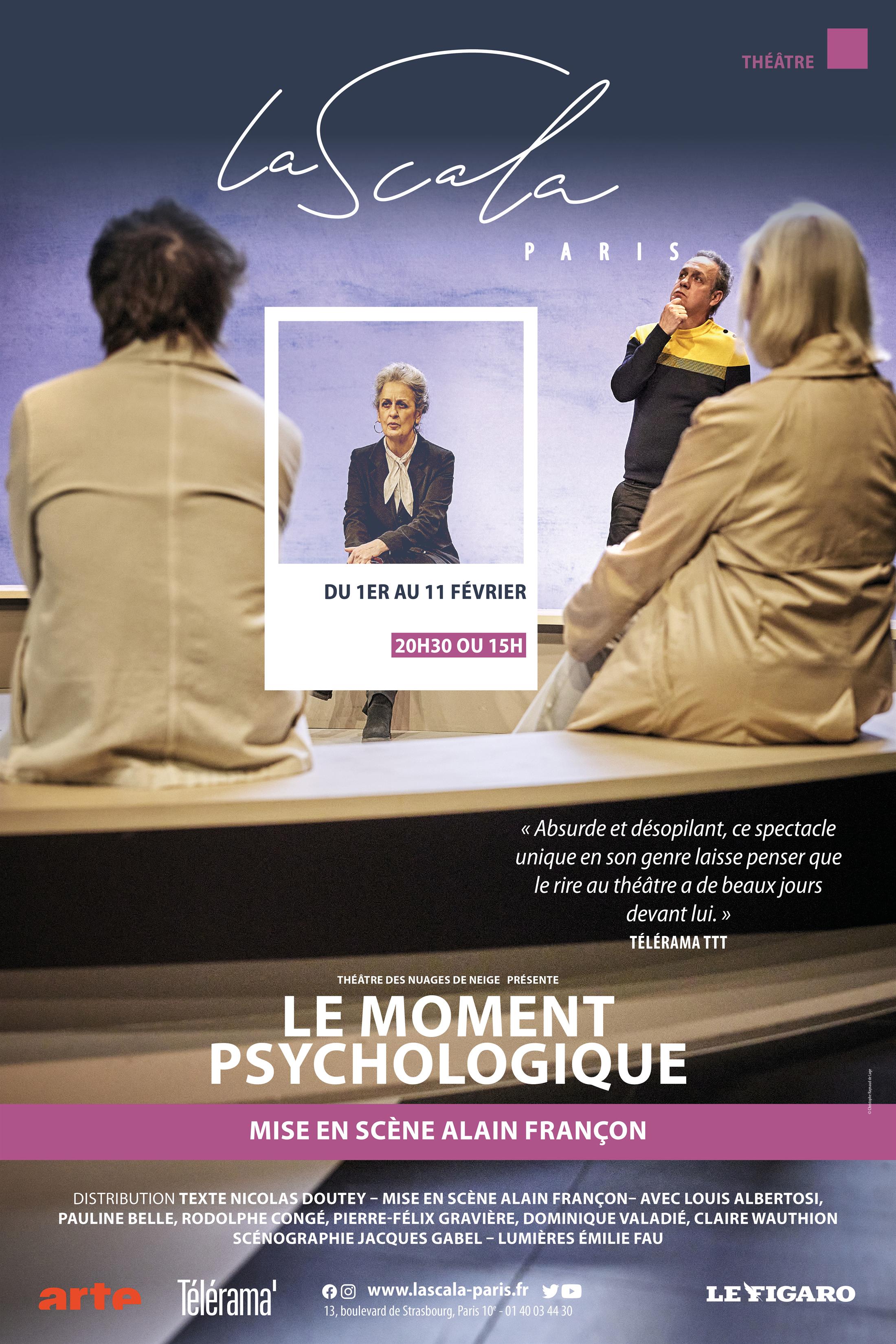 Le Moment psychologique est une pièce qui, sous des airs de comédie, plusieurs fois hilarante, aborde la question du politique. Il ne s’agit pas de l’aborder sur le mode de la satire, mais plutôt de dessiner un rêve de politique, une utopie. L’ensemble est fondé sur une « dramaturgie de la paix », ce qui fait que les rapports entre les personnages de la pièce eux-mêmes deviennent comme la maquette de l’utopie que porte le personnage de Matt.