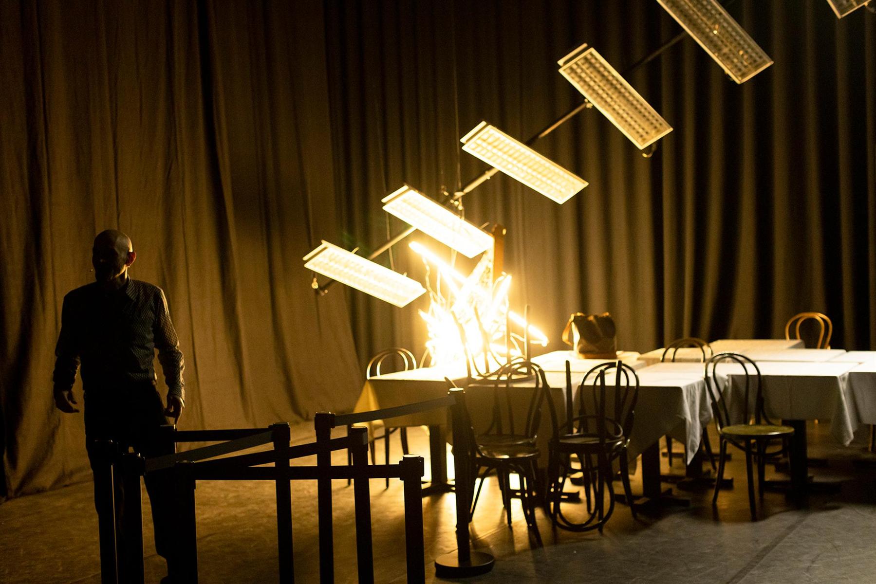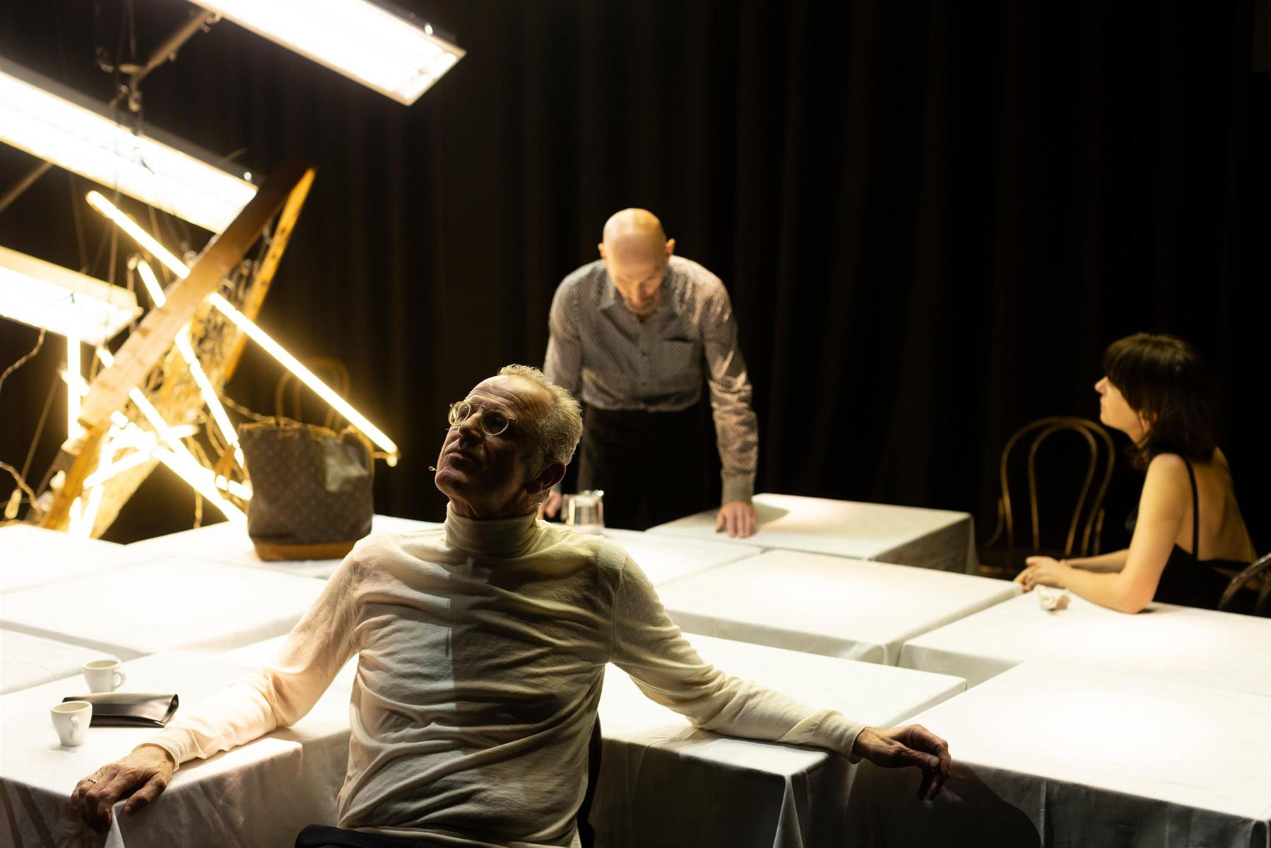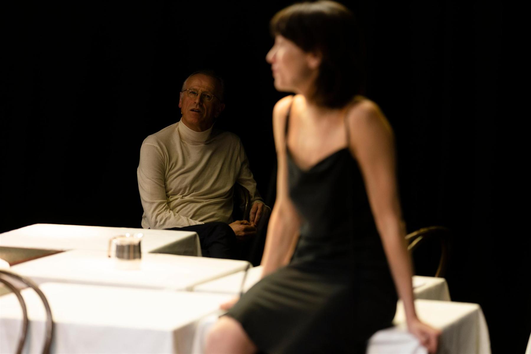 « Le collectif flamand DE HOE, anciennement de KOE, excelle dans l'art d'aborder le plateau avec une apparente désinvolture, talent propre aux grands·e·s interprètes. Natali Broods et Peter Van den Eede jouent une actrice et un écrivain qui, séparés·e·s depuis vingt ans, se retrouvent par hasard dans le hall de l'aéroport de Rome. Effrayé par un amour dévorant, ce couple avait décidé de mettre un terme à son histoire. Le temps a passé et le monde a beaucoup changé, même ce qui semblait inébranlable vacille sur ses bases. Rattrapé·e·s par leur âge, iels se demandent si leur ancienne passion a encore un avenir alors que le temps s'accélère et éparpille les souvenirs. Est-il encore possible d'être soi-même dans un univers imposé par les faux semblants ? À l'heure où plusieurs pays d'Europe renouent avec les pouvoirs d'extrême droite, le spectacle passe insidieusement du mal d'amour au malaise politique, laissant place à une satire grinçante. » Christophe Pineau