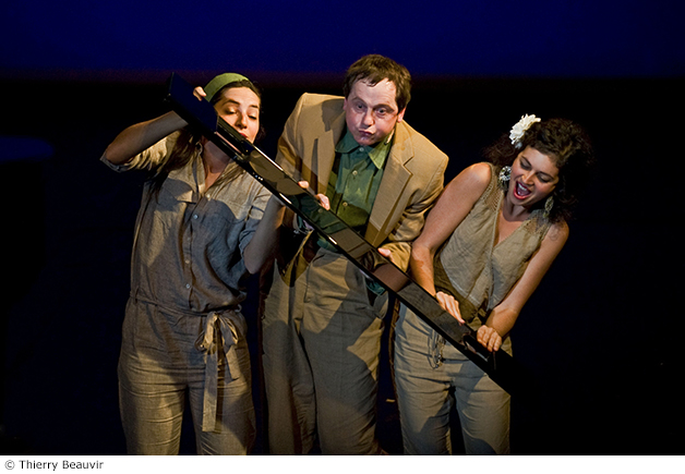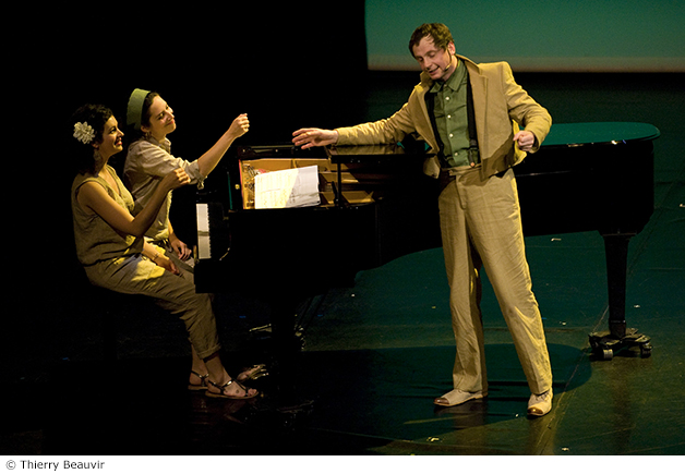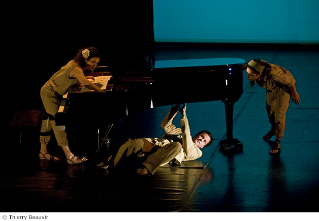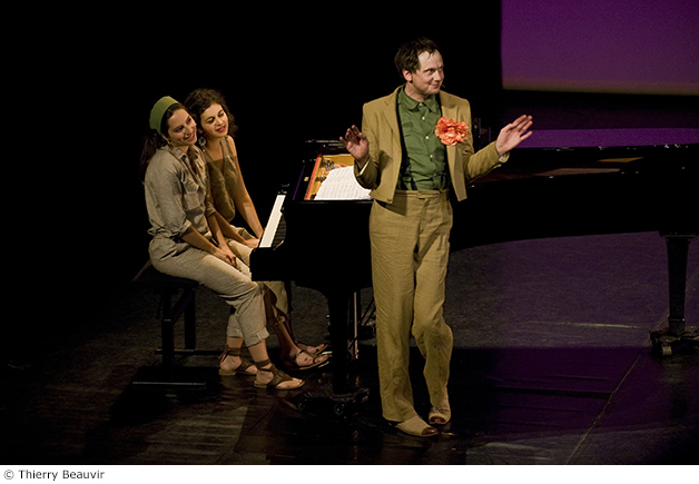 « Je sors de mon avion, en panne, puis par les gestes et les bruitages je fais vivre les personnages et les planètes du Petit Prince. Le texte de Saint-Exupéry est respecté mais coupé, pour laisser de la place au mime et au piano. La musique n’est pas une simple bande son. Le duo Jatekok, par son jeu et le choix de morceaux (Debussy, Satie, Brahms…), participe de la narration et crée une atmosphère propice à l’écoute de ce texte, très romantique. Le Petit Prince parle aux enfants sur le mode du conte mais il résonne avec nos expériences d’adultes, avec nos désillusions amoureuses. Le dialogue entre les différents modes d’expression, entre le rire et l’émotion, permet une autre approche que celle de la seule lecture. C’est une expérience à la fois drôle et sensible ». Julien Cottereau