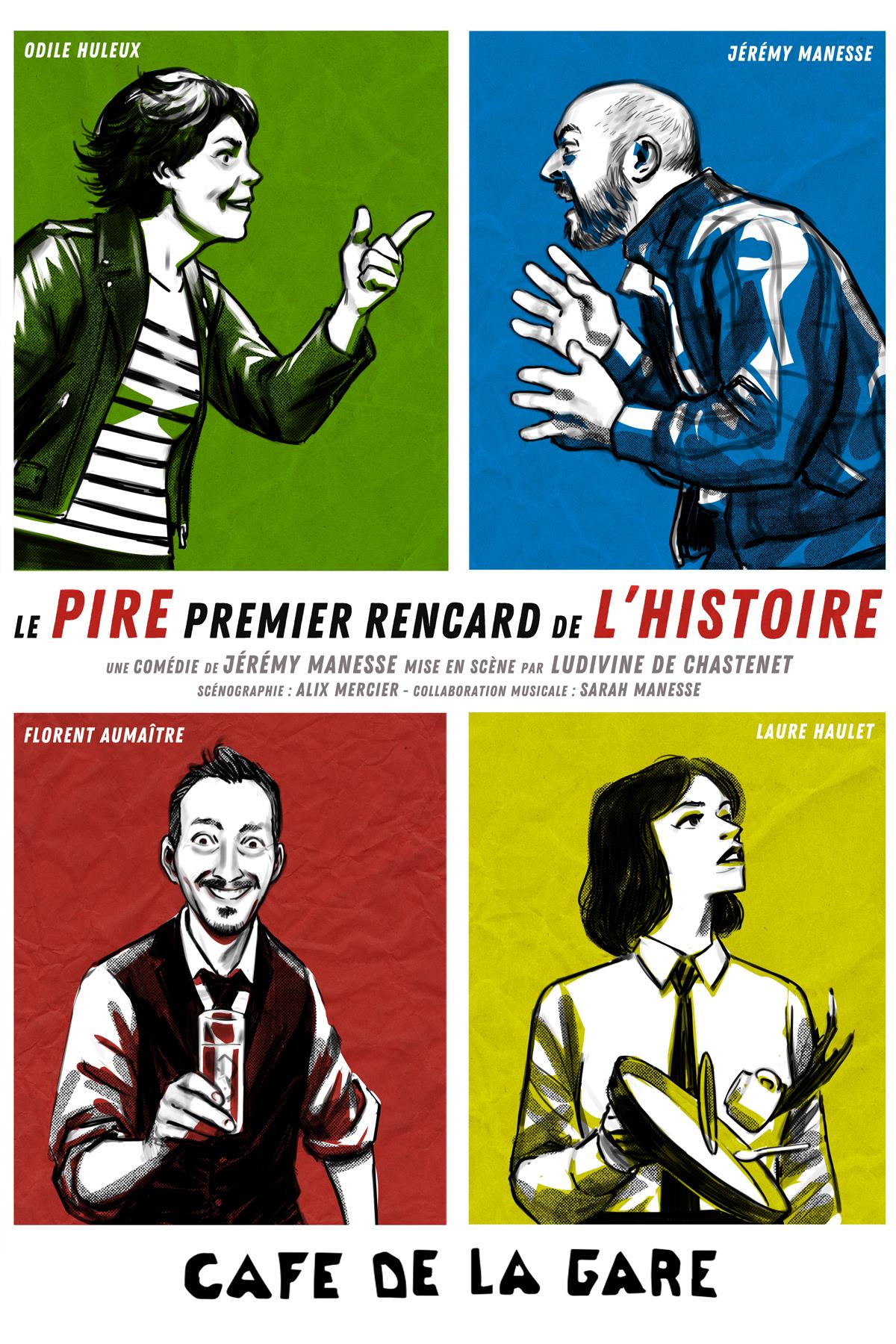 Et là, ça commence, et ça va crescendo. La pièce se met en place dans un huis clos du Troquet. On sait que cela ne va s'arrêter aux clichés d'un premier date. On est au Café de la Gare ! Et en effet, les 4 comédiens nous embarquent avec justesse et sincérité dans une réflexion engagée (et drôle !), sur l'actualité, l'écologie, le féminisme, et surtout sur l'impériale nécessité de s'écouter, se parler si on veut que les choses avancent. Bravo aux comédiens et à Jérémy Manesse pour cette pièce réjouissante, mais pas que.