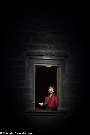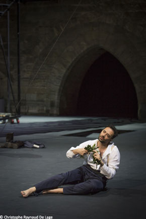 La Cour d’Honneur est une paroi ardue, un plateau sous un abîme… c’est là où le prince affronte la guerre, la peur, l’exaltation, le désir, la mort… c’est là où les personnages tombent et se redressent. On les croit morts, mais ils vivent pourtant pour condamner ou être condamnés, pour donner la grâce ou la recevoir…