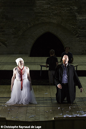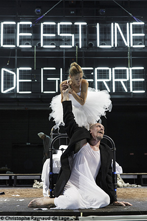 Outrage fait au père, outrage fait au nom du père, qui détruit l’ordre primordial. C’est dans le corps du père et dans le corps du roi que l’ordre est fissuré, que s’ouvre une brèche où la totalité du monde est aspirée. Le nom du père, comme le révélait Lacan dans son séminaire, est la pierre de voûte de la construction du langage, et donc nécessairement de l’inconscient. Ce nom du père est nié, oublié, moqué et anéanti dans un long chemin de croix, d’insultes et d’injures successives jusqu’à la lumière de Cordélia. Lacan, dans un de ses jeux de mots énigmatiques, transcrivait le nom du père par « les non dupes errent ». On pourrait trouver le jeu de mots abracadabrant, s’il n’y avait cette pièce où ceux qui ne croient pas errent. Où la perte de la foi conduit à l’errance, l’errance de ceux qui croient au mal comme l’errance de ceux qui croient au rien. Et sur quoi repose la foi, la foi en soi, au lendemain, à l’autre ? Rien que sur un acte de langage. Rien que sur une promesse du langage.