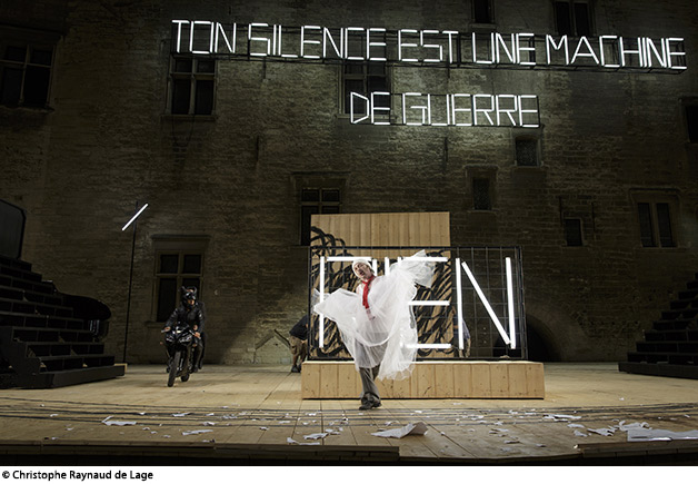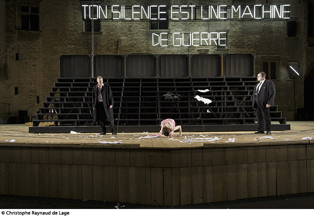 Cordélia semble suivre les préceptes de Wittgenstein, qui conclut son tractatus philosophicus par cette formule lapidaire, seul espoir à l’impuissance du langage : « Ce que l’on ne peut dire il convient de le taire. » Mais c’est bien plutôt Wittgenstein qui se prend pour Cordélia essayant de désigner une vérité d’outre-mots encore possible mais exilée de la vie des hommes. Régane et Goneril acceptent que le langage serve l’intérêt et l’argent. Car la toute puissance de la technique débute au règne de l’argent, la technique ne sert plus les hommes mais les puissants, la technique elle-même inventera une guerre qui n’a plus de guerre que le nom, qui fera entrer la guerre dans l’innommable de l’extermination massive. (…)