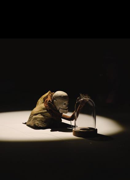 Caché sous la table, le marionnettiste manipule des êtres aux allures spectrales, manœuvre des trappes qui s’ouvrent et se referment, et présente des motifs de vie et de natures mortes, pour que les auteurs écrivent une histoire dans le temps limité de la représentation. À la fin de la scène, les spectateurs ont le plaisir de découvrir quatre versions différentes de ce qu’ils auront eux-mêmes imaginé… Une sorte de cadavre exquis des plus étonnants.