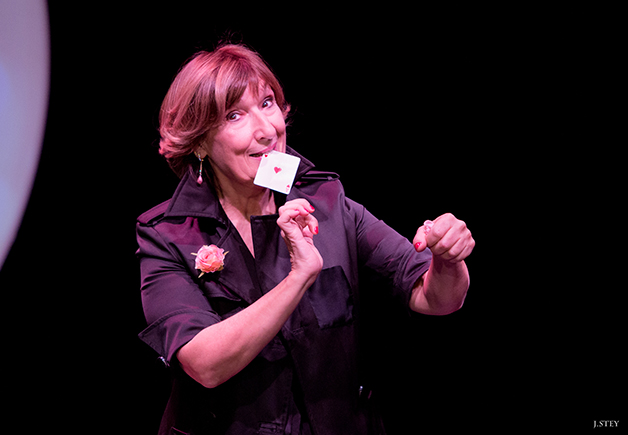 L’essence de mon métier de magicienne tourne autour de cette thématique, et c’est cette enquête que j’ai eu envie de partager avec le public, tout en m’amusant joyeusement avec lui, comme l’enfant… Sérieusement investi dans le jeu ! Après un spectacle (qui est une illusion) que reste-t-il ? Et si c’était ce moment de grâce du sourire du chat d’Alice qui, juste avant de disparaître, sourit…. ? Alors, je serais remplie de gratitude… » Élisabeth Amato