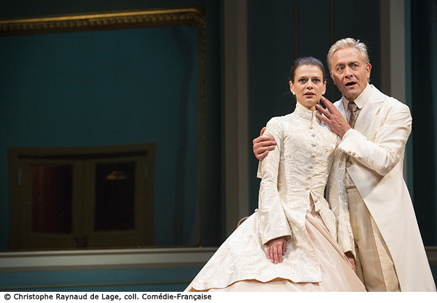 La piece est très bien jouée et Denis Podalydes et Michel Vuillermoz sont vraiment excellents. Les décors et les costumes sont très bien également avec cependant quelques concessions (il en faut hélas toujours au moins une) incompréhensible à la modernité obligatoire: des anachronismes (lampe électrique, téléphone) et les grosses têtes des envoyés du prince dont le sens et l'intérêt m'échappent.