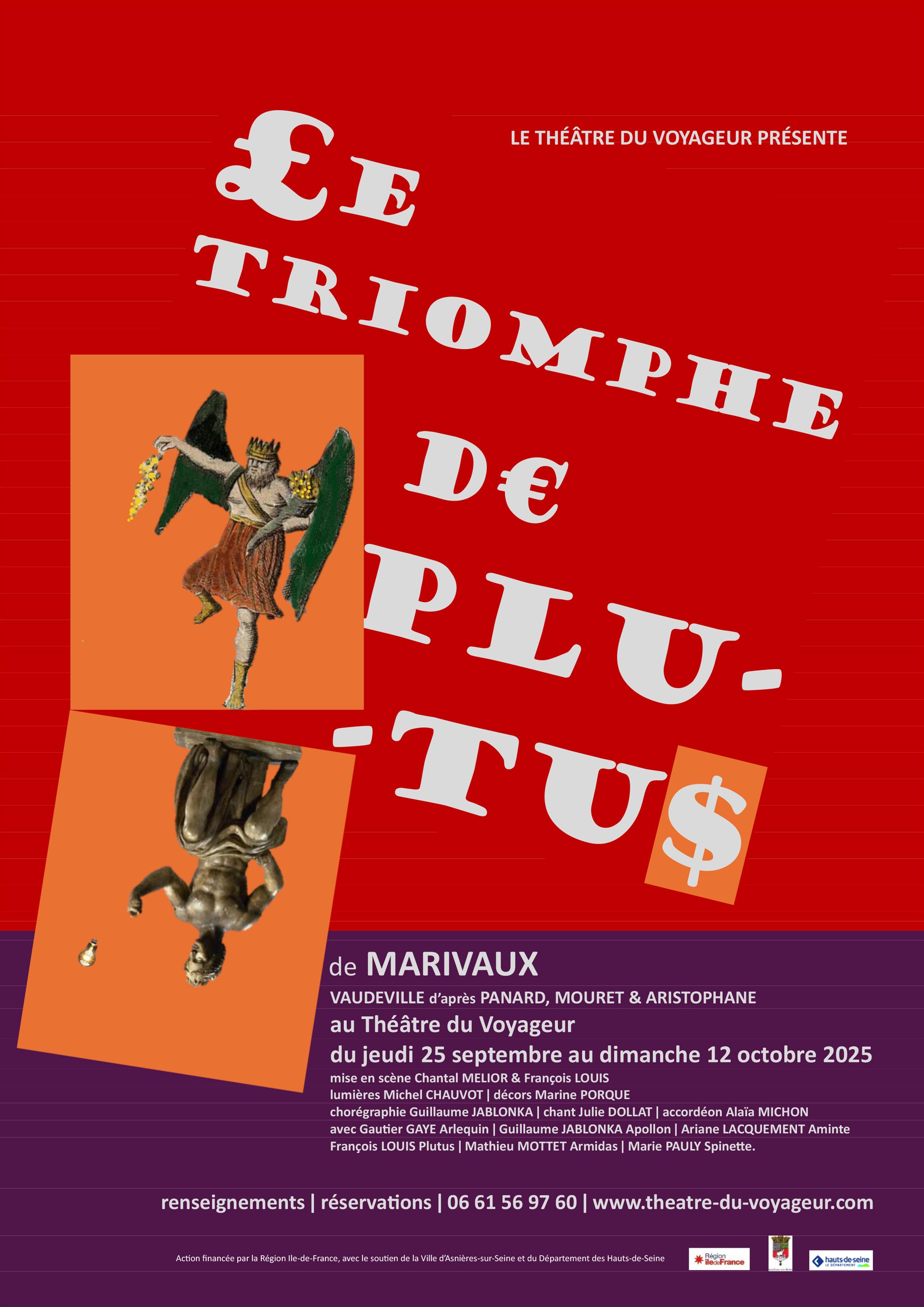Sur tous les tons, Le Triomphe de Plutus met en scène le pouvoir irrésistible de l’argent, et se conclut par un vaudeville, où se mêlent aux airs de Mouret et Panard, les personnages d’Aristophane et autres fantaisies carnavalesques, jusqu’à ce que s’arrête la plaisanterie.