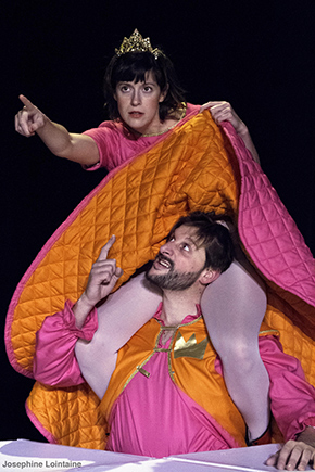 Enfin, il y a le personnage féminin, la princesse, qui n’a pas une présence très marquée dans le conte de Perrault. Dans cette adaptation la princesse a une vraie place, avec un point de vue plus prononcé. Fait-elle partie du complot, comme ce serait le cas dans un canevas de Commedia dell’ Arte ? Est-elle plus fine que son père ? Débusque-t-elle la supercherie ? Est-elle heureuse de son sort ? Consent-elle de si bonne grâce à épouser le marquis de Carabas ? Voilà autant de pistes pour approfondir cette figure essentielle à l’intrigue mais si peu traitée dans la version de Charles Perrault.