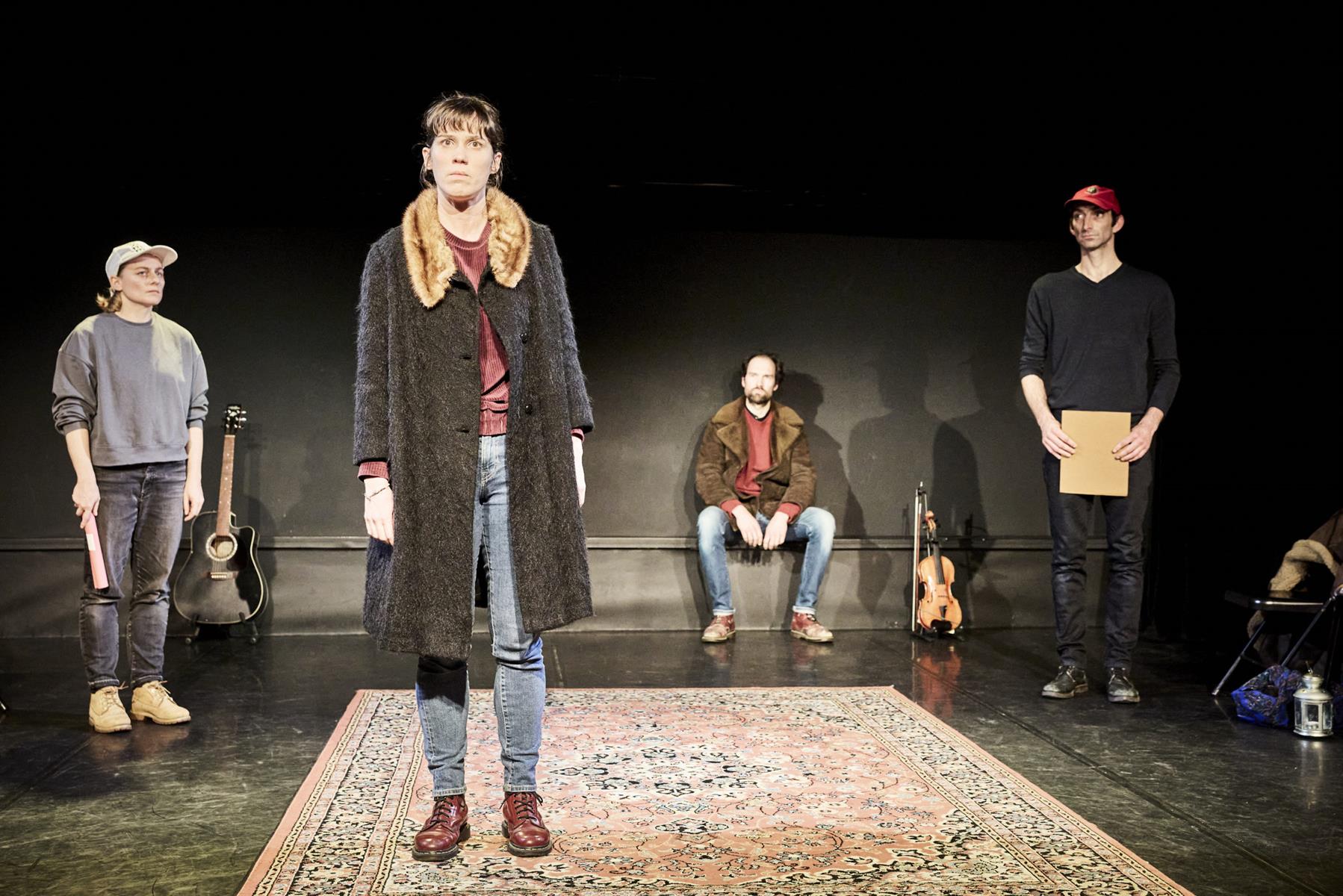 Je leur ai proposé de monter Le Conte d'hiver dans un temps accéléré, à la manière d'un théâtre guérilla, pressé par l'envie et l'urgence de revenir à la puissance des classiques. L'idée s'est ainsi imposée d'elle-même de réduire les interprètes à deux hommes et deux femmes pour se partager les 17 rôles.