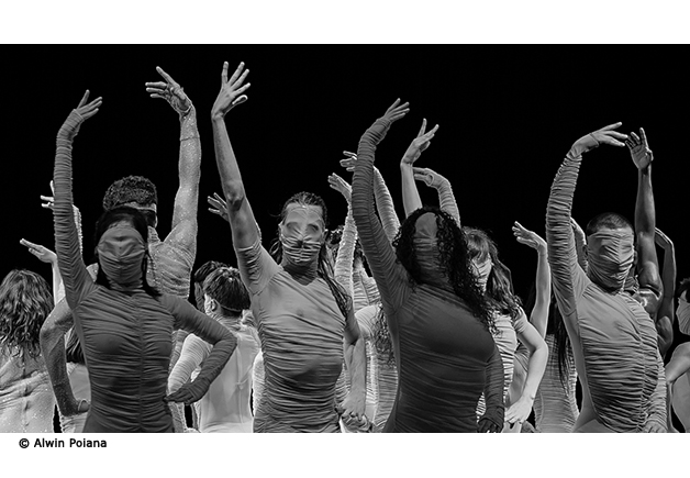 Sur scène, une armée de corps masqués avance. Une seule et même masse abolissant les individualités, un seul et même corps, compact, apparemment indestructible. Puis les masques tombent et chacun des dix-sept magnifiques interprètes du Ballet National de Marseille peut désormais exprimer son talent, jetant son « corps dans la bataille », pour reprendre l’expression de Pasolini chère aux deux créateurs. À un rythme d’enfer, les danseurs à la technique irréprochable s’investissent alors dans une chorégraphie foisonnante à la gestuelle complexe : tours enchaînés, batteries, sauts, unissons ou solos se succèdent, donnant à voir une nouvelle forme de ballet contemporain.