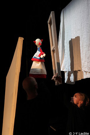 Ce projet pose la problématique de la transmission et fait se rencontrer ces deux étrangers, brillants de leurs différences : l’acteur et la marionnette. À partir du célèbre cours que le grand homme de théâtre russe Constantin Stanislavski (1863-1938) a rédigé sous la forme d’un roman didactique, quatre-vingt ans après, un acteur, fin « diseur », un mime, un marionnettiste et une comédienne bilingue russe expérimentent pour nous la «méthode Stanislavski ». Jubilatoire !