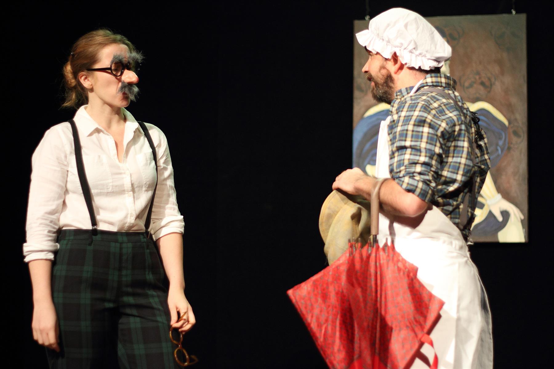 La retravailler pour l'adapter à la scène a été un vrai plaisir. Dans notre version, deux conteurs/guides accompagnent les visiteurs dans le manoir de Canterville, et en profitent pour leur raconter l'histoire de son illustre fantôme en interprétant tour à tour tous les personnages.