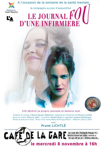 j'ai eu l'occasion de renconter Prune LIchtlé au connétabe et de profiter de cette occasion pour lui dire à quel point j'avais aimé son seul en scène(vu fois, eh oui!), j'avais été séduite par son jeu, par l'énergie qu'elle dégageait et par toutes les sensations qu'elle nous restituait..J'ai tout aimé dans ce seul en scène, le fond, la forme, la mise en scène ... et encore un grand bravo à la comédienne de "folie"!