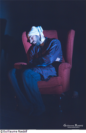 Argan, le malade, devant garder sa chambre, Vincent Blot a imaginé ici une scénographie s’articulant toute entière autour de ce lieu unique et « total » : Chambre où l’on nait, chambre où l’on meurt, où l’on donne la vie, où l’on veille... La mise en scène se resserre autour d’un « lit-fauteuil » autour duquel se présente toute une galerie de personnages hauts en couleur. Nous assistons à une sorte de « carnaval » où la servante se déguise en médecin, l’amoureux se fait passer pour le remplaçant du professeur de musique, Argan lui-même joue à faire le mort, quant à Béline, son épouse, elle est un modèle de duplicité. Grâce à ces renversements sont révélés les faux-semblants qui permettront, finalement, « le triomphe de l’amour » dans un « Happy end » provisoire.