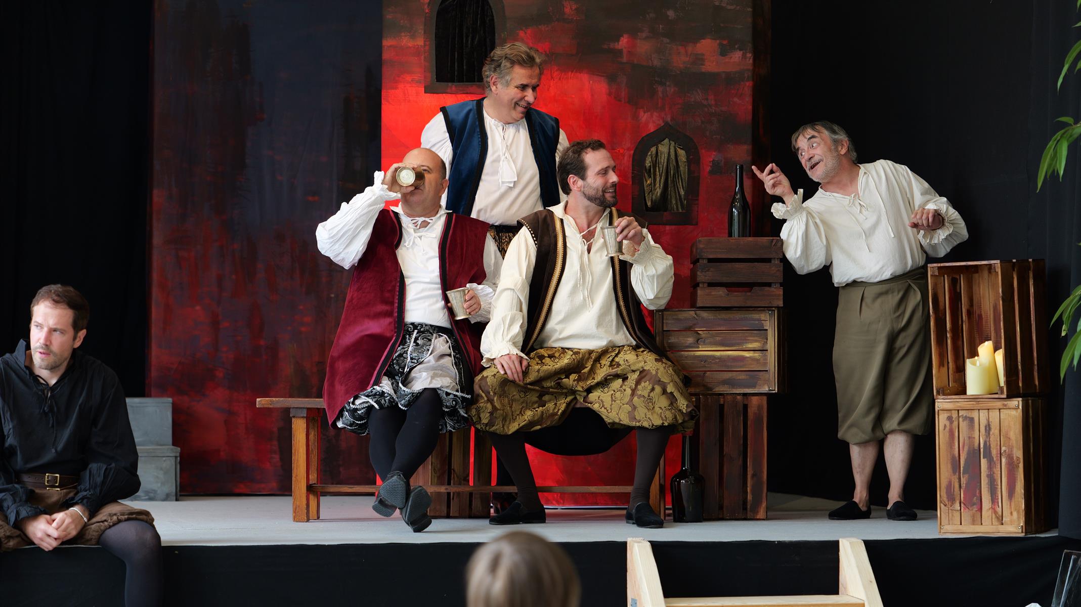« Le Marchand de Venise » est considéré comme une des « pièces à problèmes » de Shakespeare. On compte donc sur les adaptations et les mises en scène pour nous en révéler en priorité tel ou tel aspect. Bien sûr, toute interprétation judéophobe ou antisémite de cette pièce ne présenterait aucun intérêt et est heureusement proscrite depuis longtemps, me semble-t-il. L’adaptation et la mise en scène de Carine Montag laisse sa place à une compréhension de cette pièce comme une réflexion sur le droit – ou comment on peut en s’attachant à respecter le droit à la lettre en distordre l’esprit pour écraser une minorité - ; c’est dans ce qu’elle nous propose, même si je pense qu’elle aurait pu insister encore plus sur cette lecture de la pièce. En revanche, on doit lui rendre hommage sur sa capacité à respecter pleinement la propension de Shakespeare à mélanger les genres et à nous faire réfléchir, mais aussi rire et même nous esclaffer dans le même spectacle. Voilà en tout cas une belle adaptation, une heureuse surprise dans le beau cadre de ce festival estival.