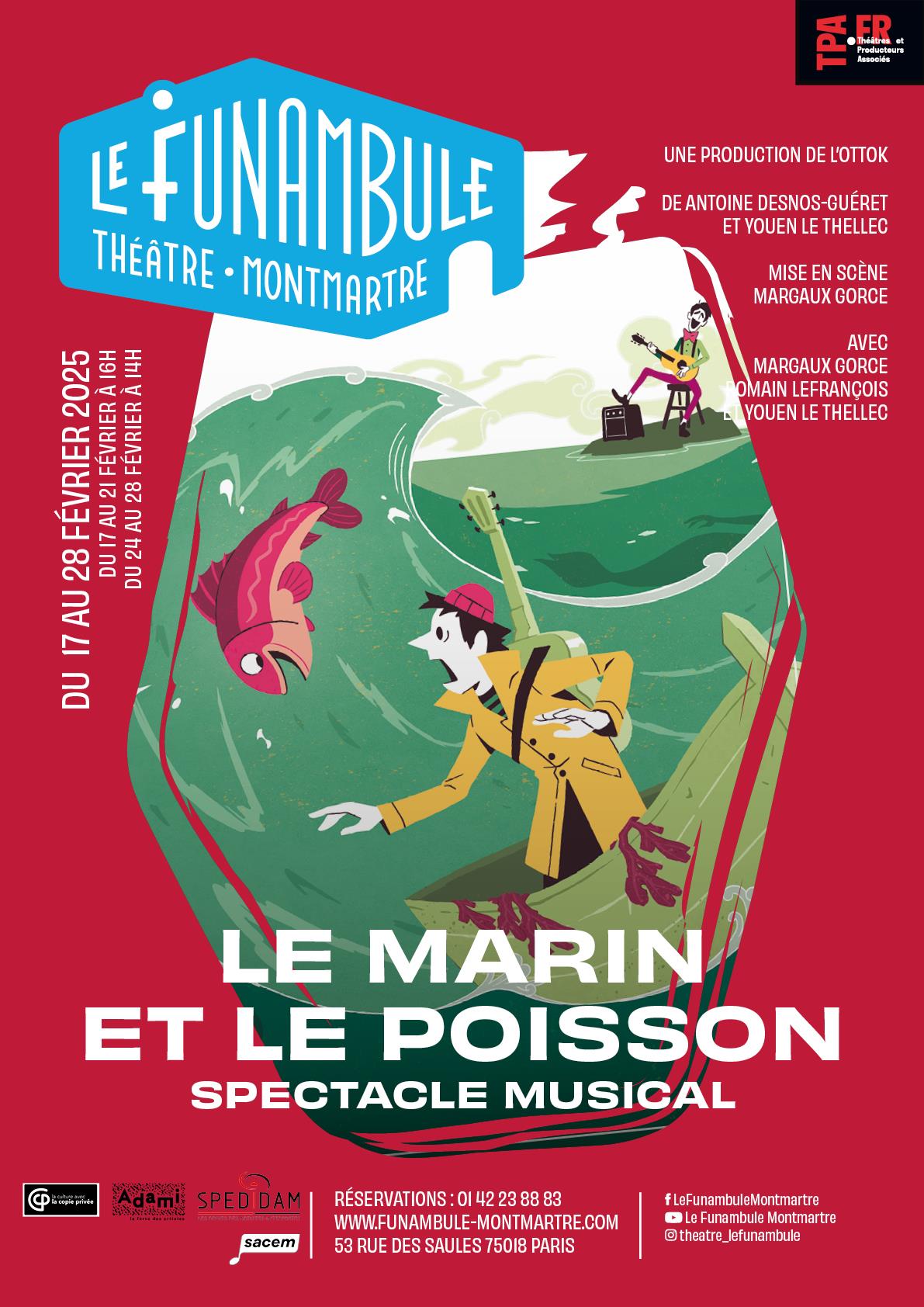 Un pauvre marin pêche un poisson parlant qui l’emmène sur la piste d’un trésor… Enfin ça, c’est l’histoire prévue par le conteur, mais ces deux personnages hauts en couleurs risquent bien de tout faire tomber à l’eau ! Cette pièce maritime et musicale revisite avec un humour décalé, le conte merveilleux et ses codes.