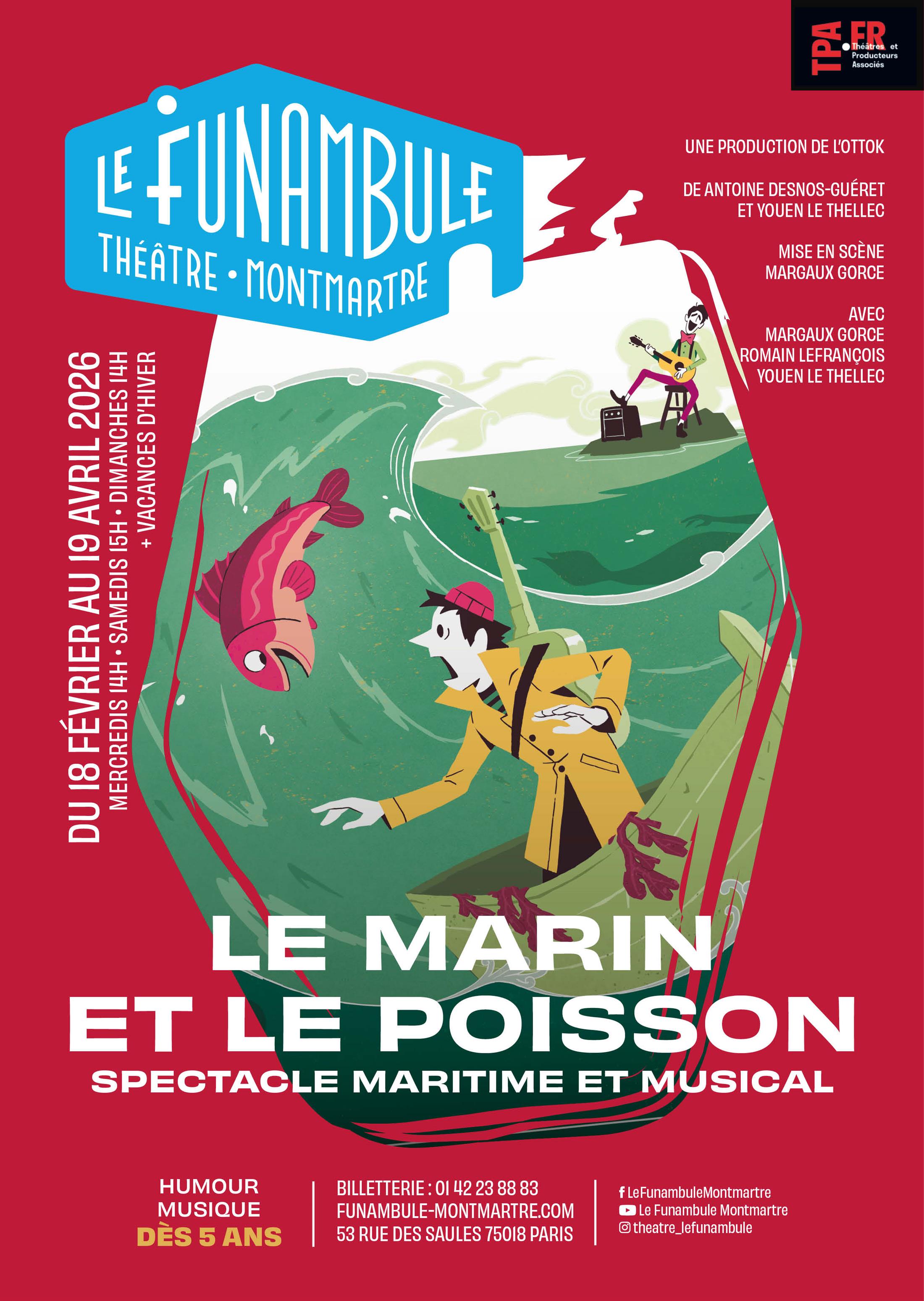 Un pauvre marin pêche un poisson parlant qui l’emmène sur la piste d’un trésor… Enfin ça, c’est l’histoire prévue par le conteur, mais ces deux personnages hauts en couleurs risquent bien de tout faire tomber à l’eau ! Cette pièce maritime et musicale revisite avec un humour décalé, le conte merveilleux et ses codes.