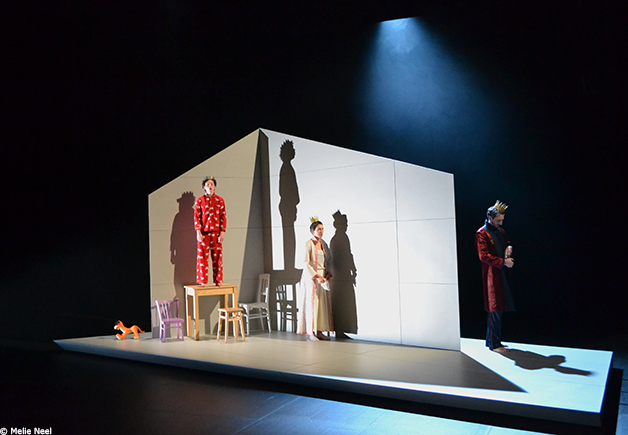 Le père ressemble à l’Ogre, la mère à Cendrillon, le fils est le petit prince, l’amie et la grand-mère sont des figures de marraines, de fées ou de petites souris. Les scènes ressemblent au quotidien d’une famille actuelle, mais l’univers, les dialogues, les suspensions nous transportent ailleurs.