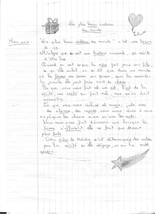 À mots feutrés, avec la juste distance, Nathalie Bensard fait parler le silence en créant des espaces entre les mots pour faire résonner ce qui ne se dit pas. Louis regarde sans comprendre ou comprend sans voir, joue, écrit et dit des poèmes pour mettre des mots sur les non-dits des grands. Ce qui le turlupine quand même dans cette histoire c’est de savoir si l’amour c’est toujours dire « oui ».
